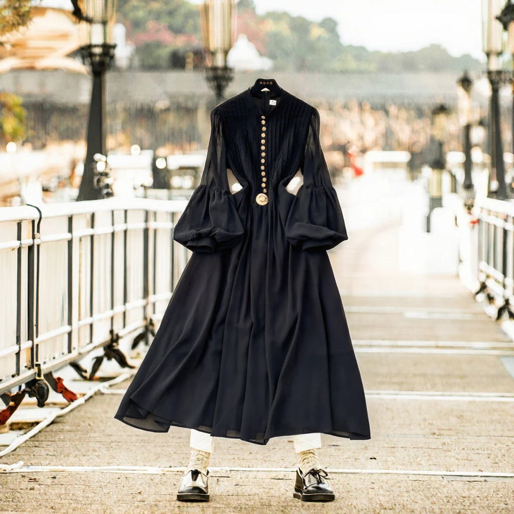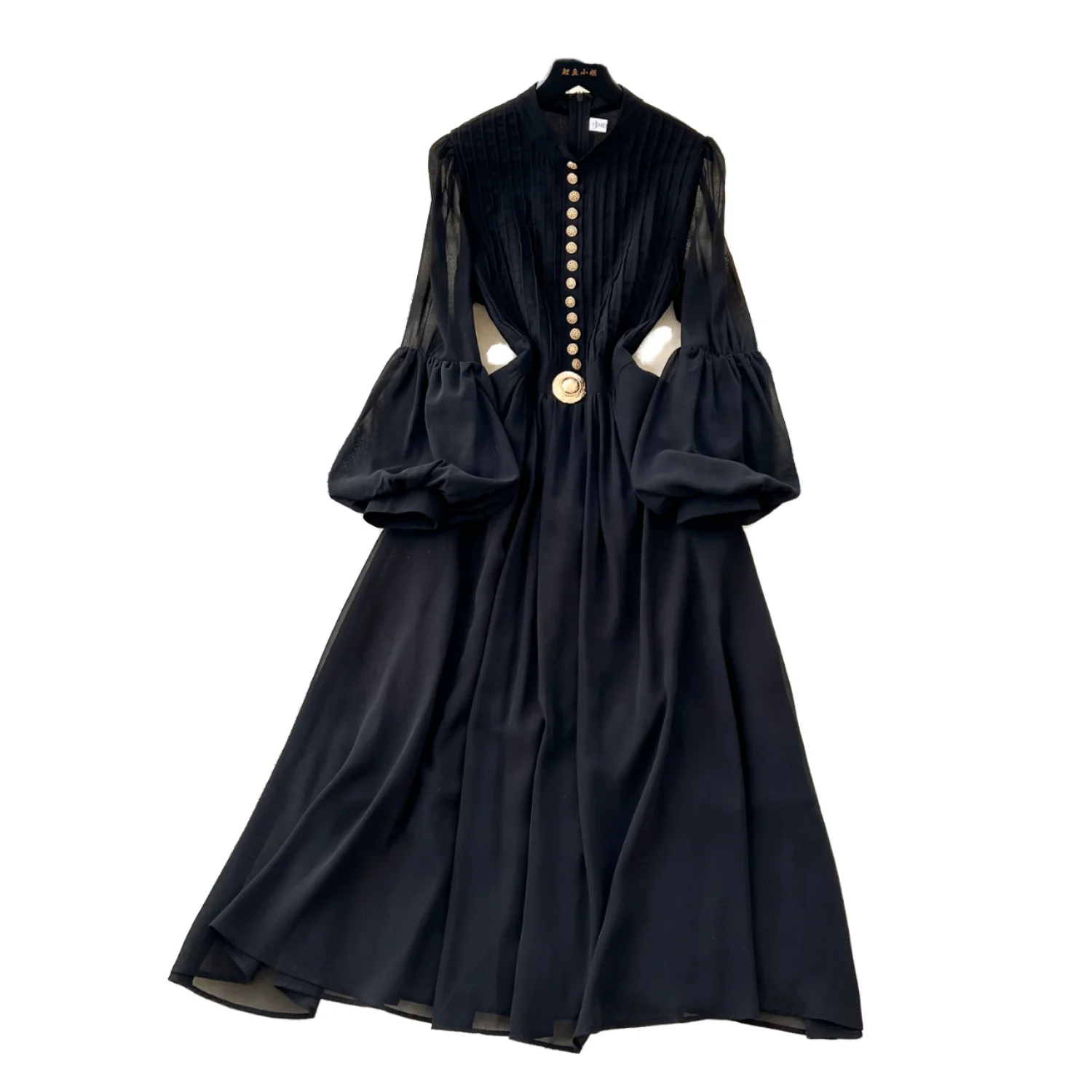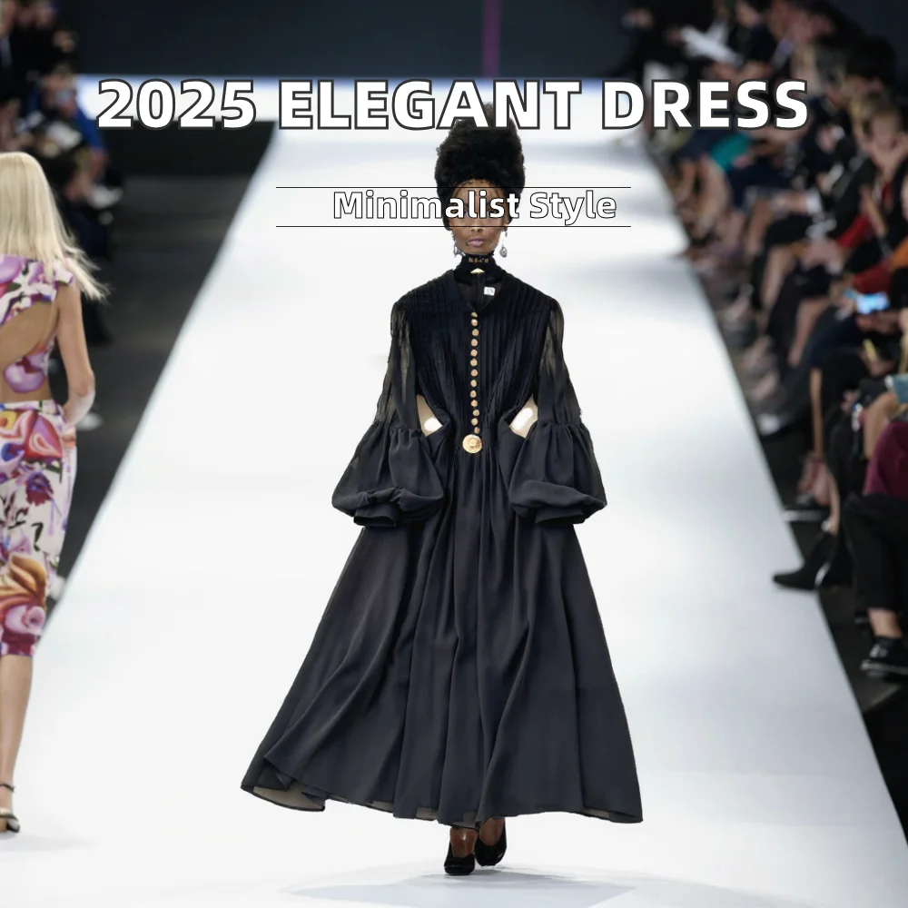 Customize French High-end Elegant Casual Solid Woven Breathable Maxi Dress 2025 Spring Fashion Lantern Sleeve Chiffon