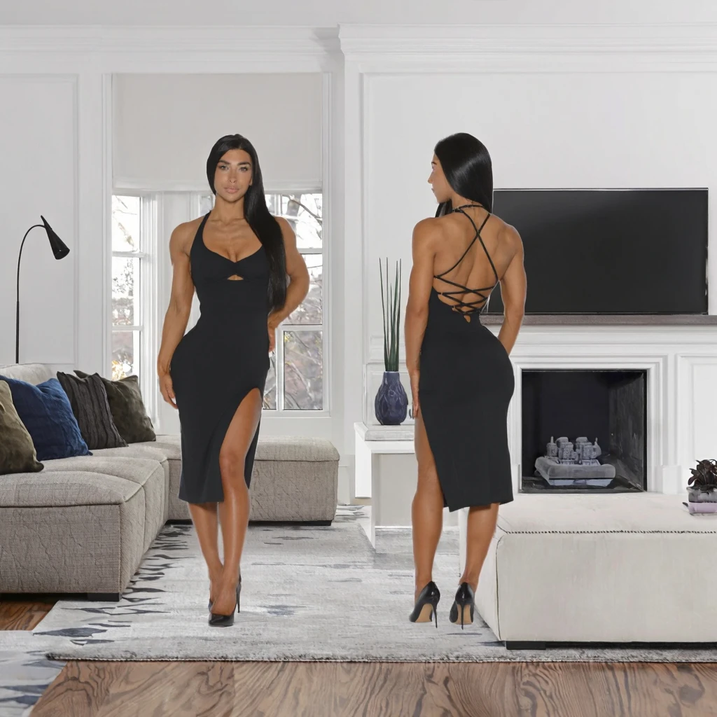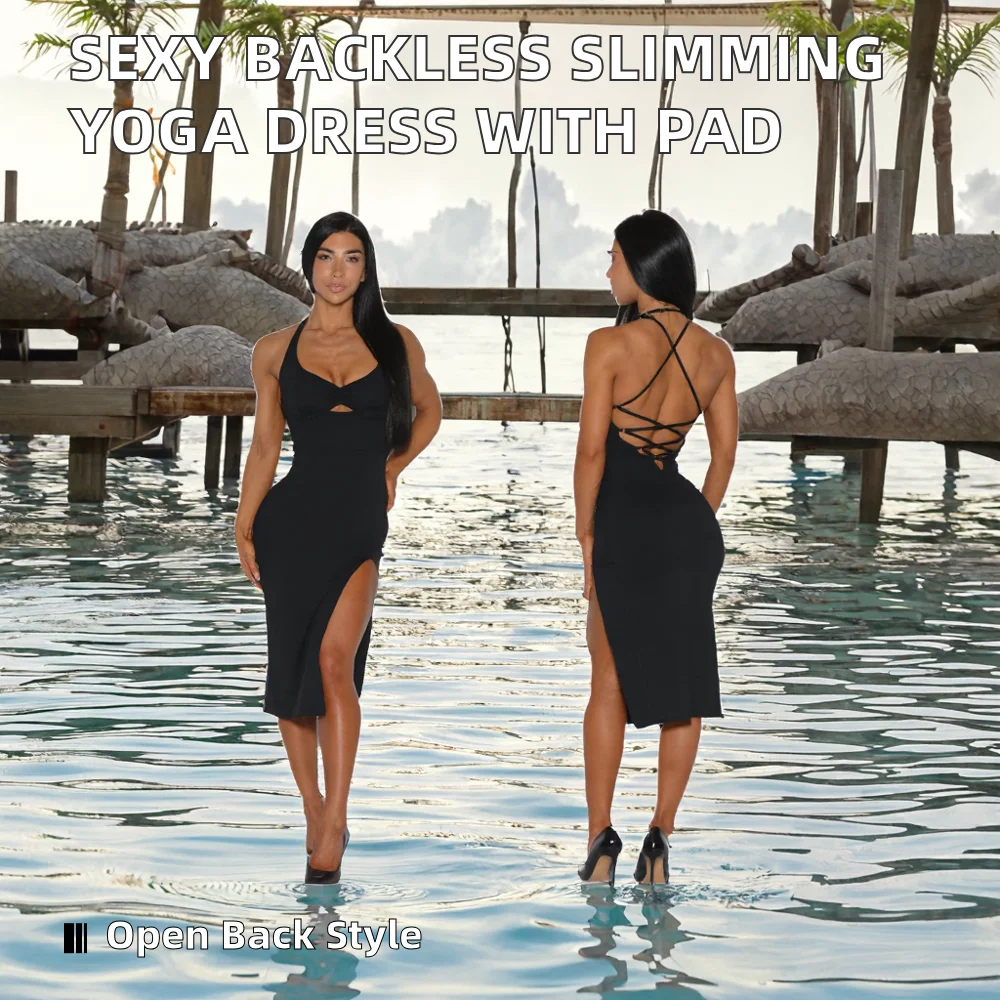 Customize Sexy Casual Natural Leisure Washable Cross Backless Yoga Hip Lifting Slimming Tight Dress for Women with Chest Pad
