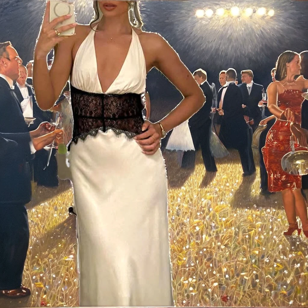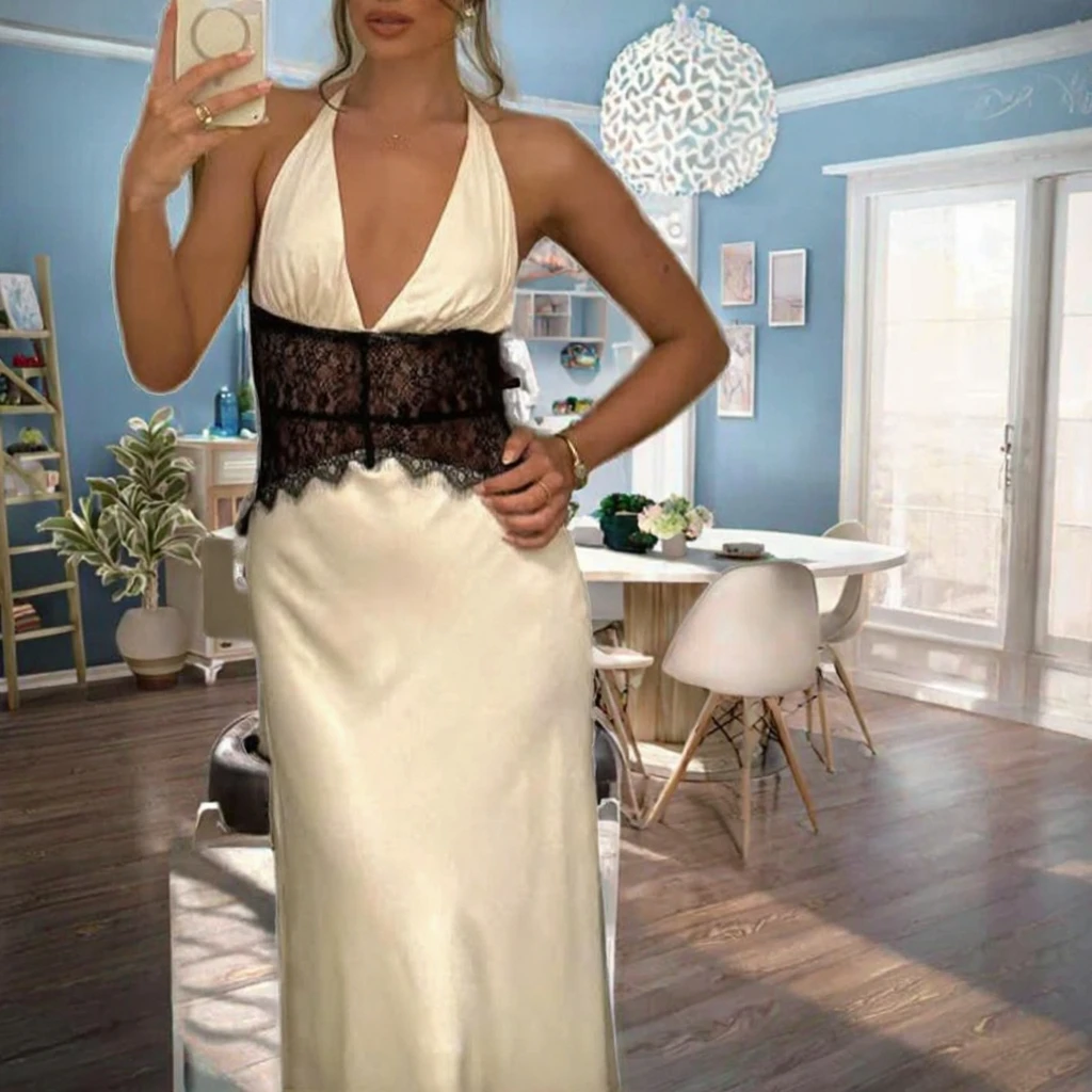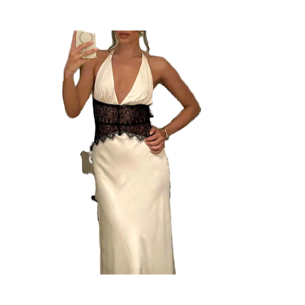 Customize New Women's Natural Waistline Eco-Friendly Casual Maxi Dress with Deep V-neck Backless Lace Detail Sexy Regular Fit