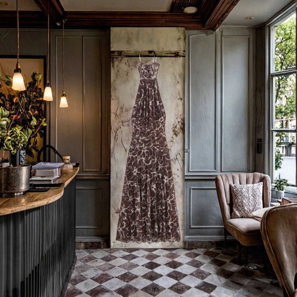 ZYHT 73957 Hot Selling Women Lady Printed Satin Beige Mermaid Fish Tail Floor Length Party Cocktail Evening Dress Gown