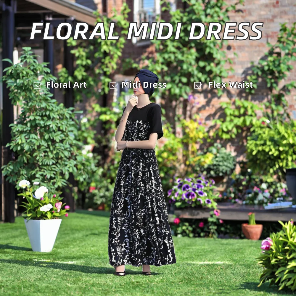 Customize Summer Women's Dresses Sweet Cute Sexy Floral Satin Breathable Washable Regular Fit Midi Dress