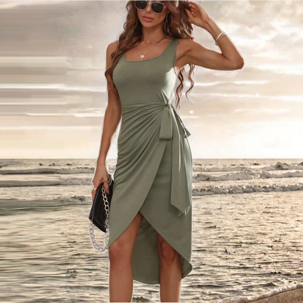 Customize Women's Casual Summer Midi Dress with Solid Color Vest Skirt Modest Design Woven Worsted Fabric Washable Front Logo