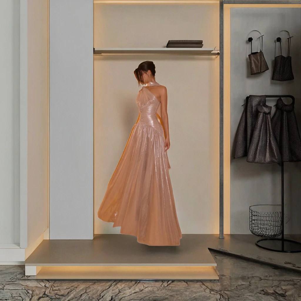 customize Sharon Said Floor-Length A-Line Elegant Rose Gold One Shoulder Evening Scarf Pleated Wedding Party Prom Gowns