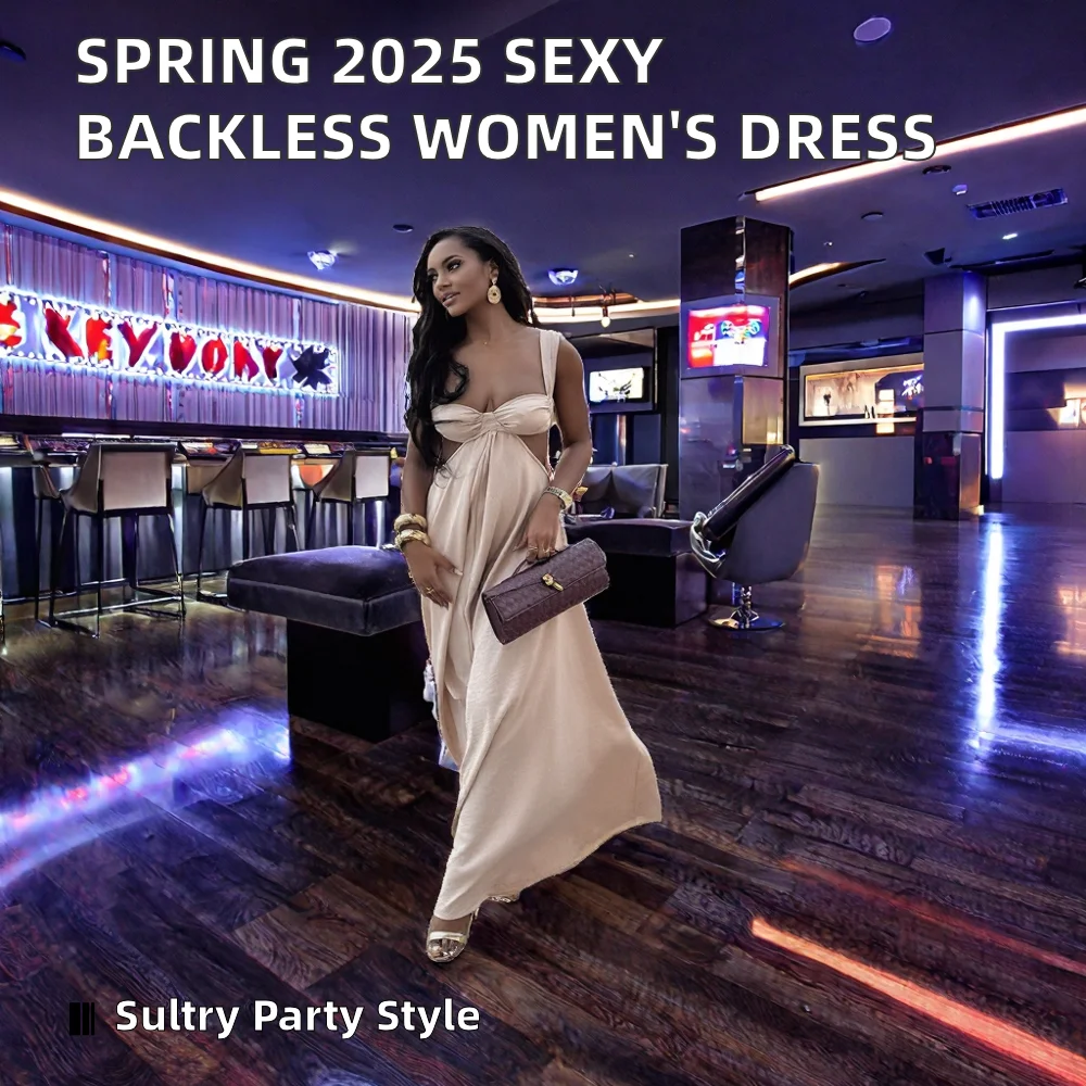 Customize Summer Sexy Club Floor-Length A-Line Satin Dress Spaghetti Strap Backless O-Neck Party Occasion Polyester Cotton
