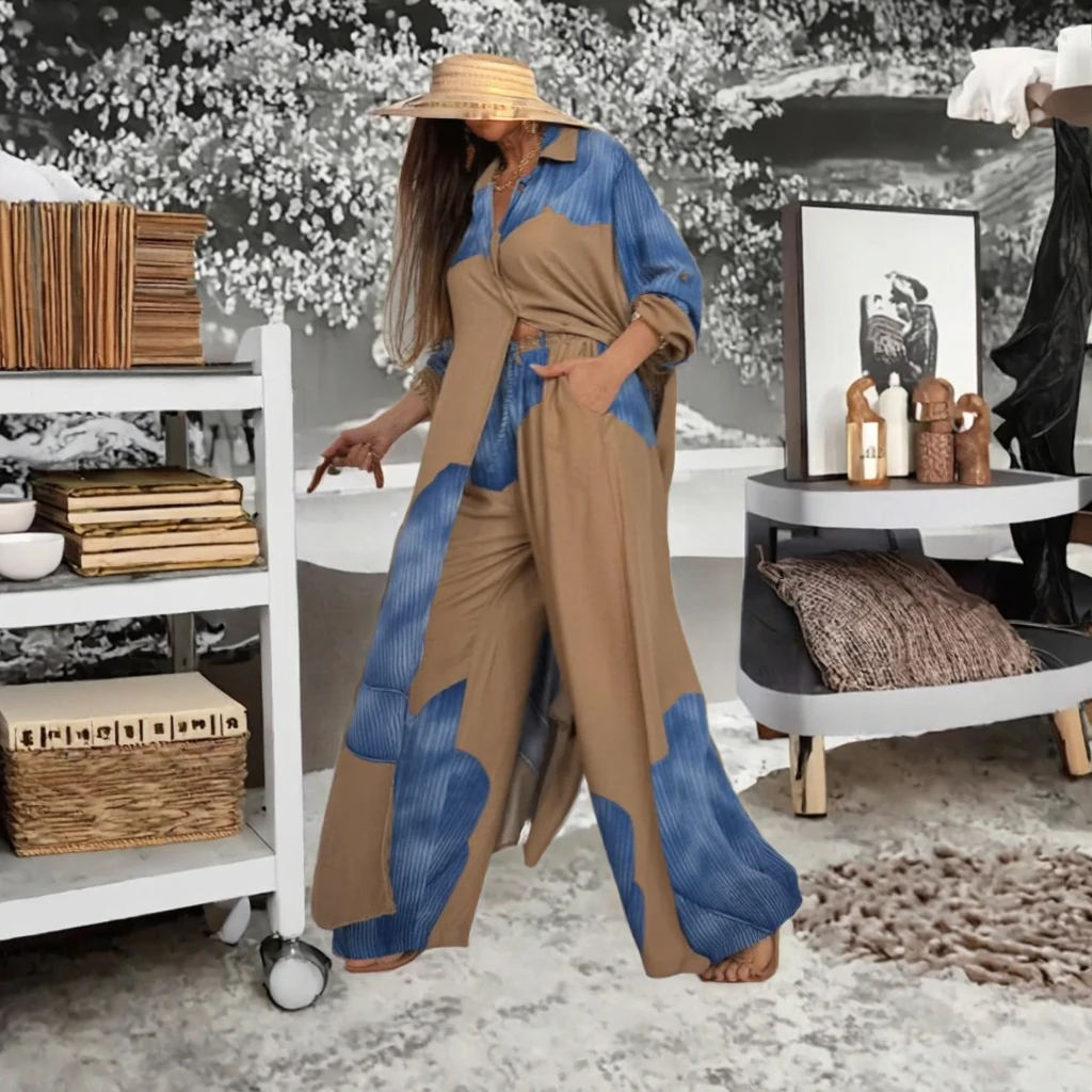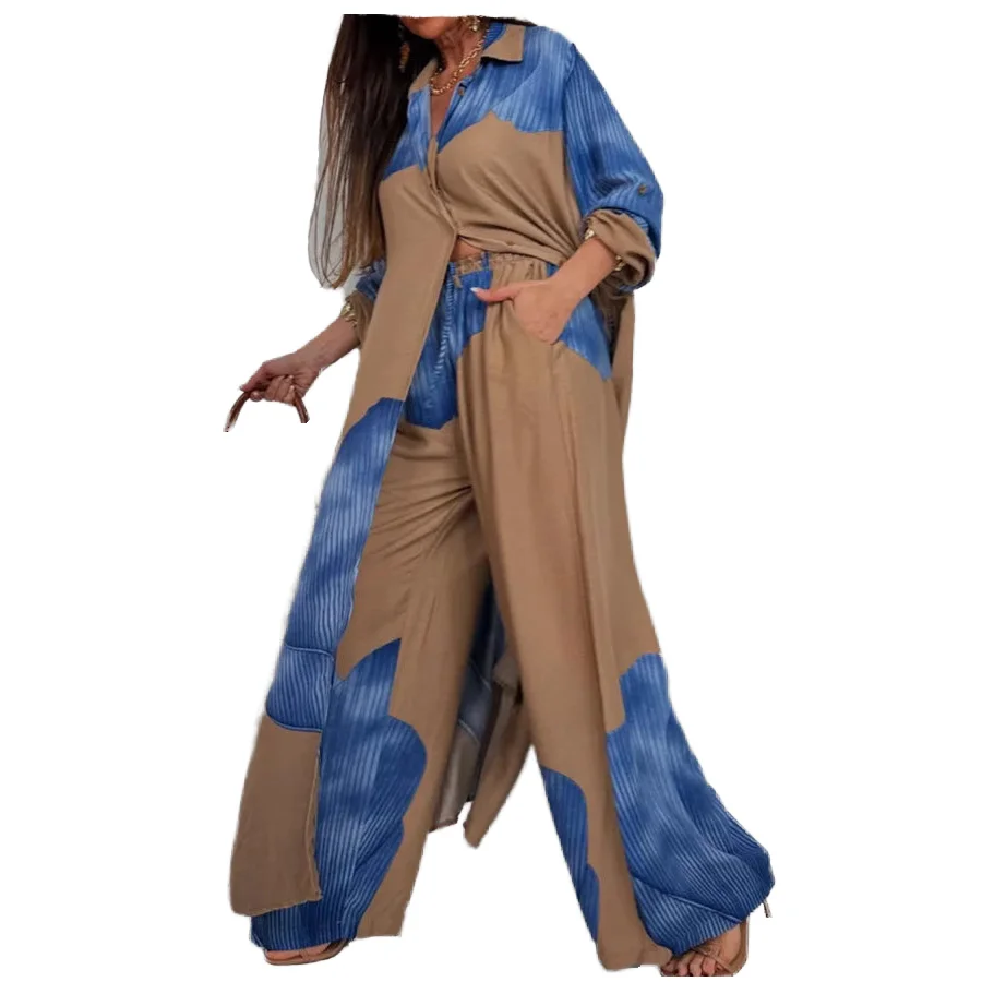 Customize Boutique Wholesale Autumn New Fashion Regular Fit Versatile Shirt Casual Pants Women's Sets Canvas Nonwoven