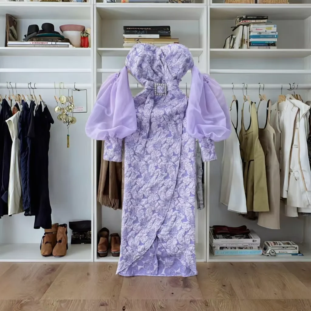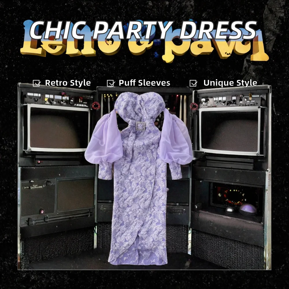 Customize High End Light Luxury Vintage Casual Breathable Eco-Friendly Washable Midi Woven Strapless Lantern Sleeve Dress