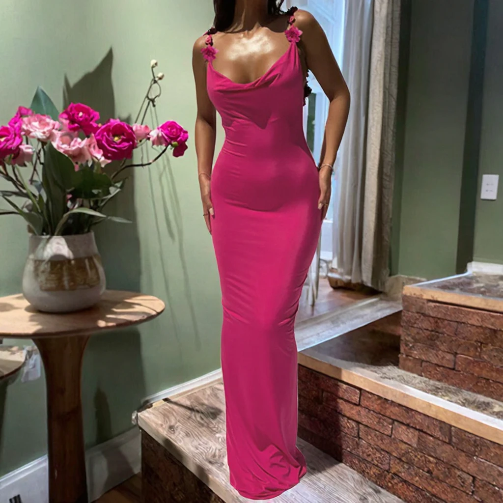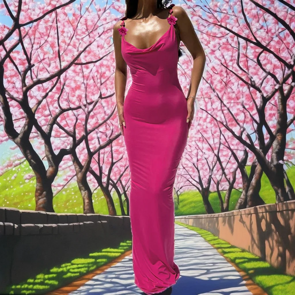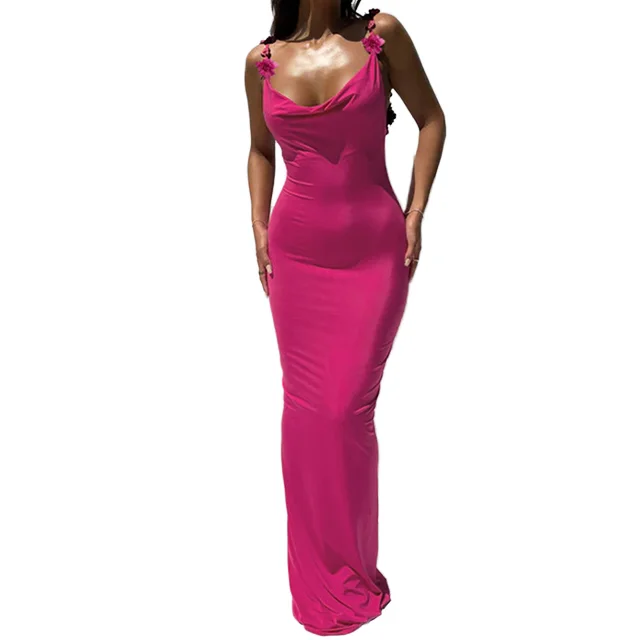 Customize Rose Red Dot Print V-Neck Empire Waist Fit Flare Strap Maxi Dress Sleeveless Backless Sexy Party Club Evening Summer