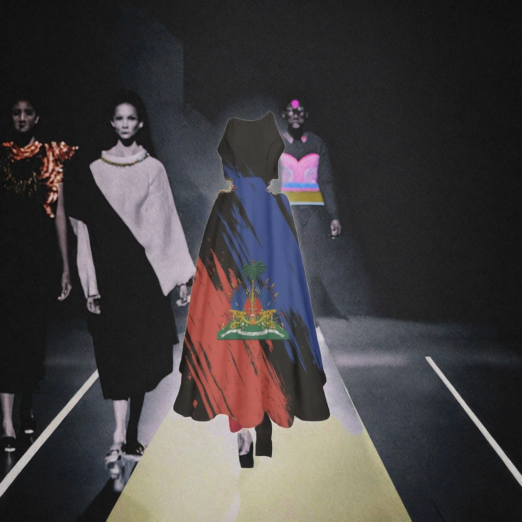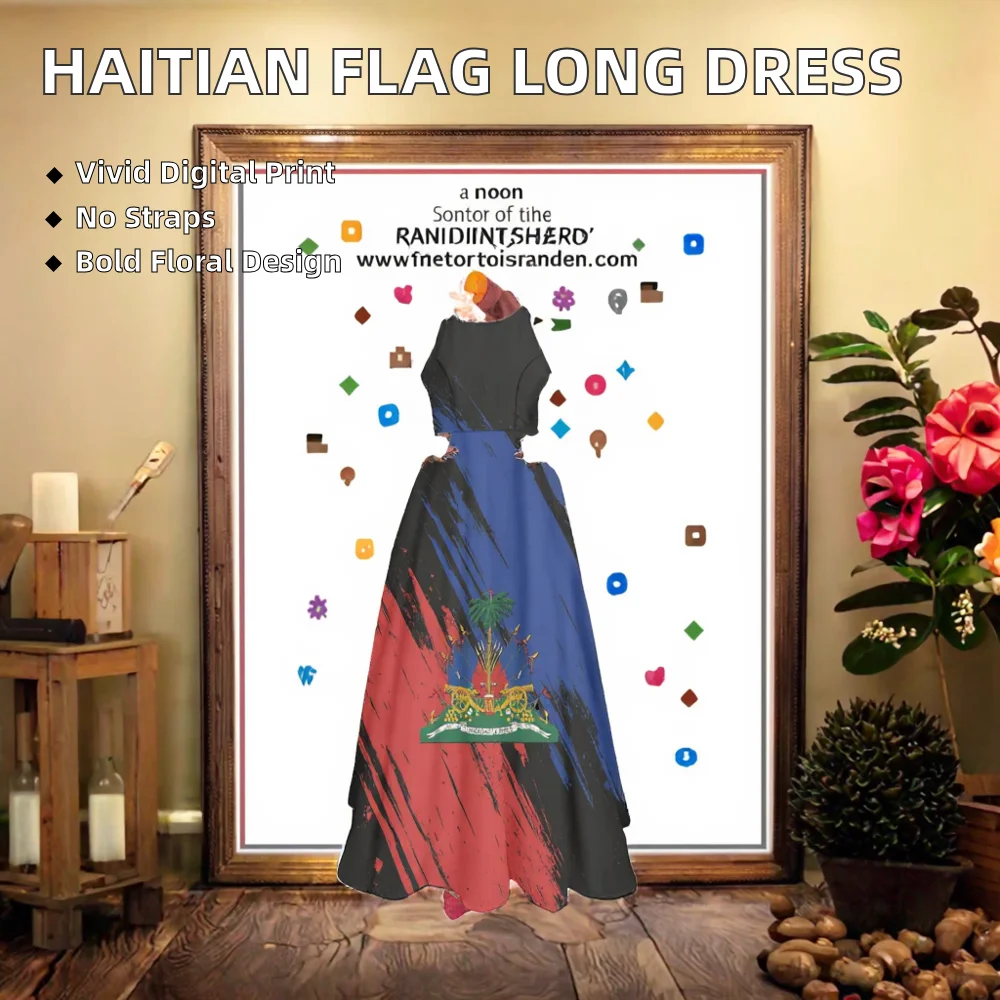 Customize Drop Shipping Haitian Design Strapless Sweet Long Dress Women Sleeveless Elegant Custom Country Flag Pattern Haitian