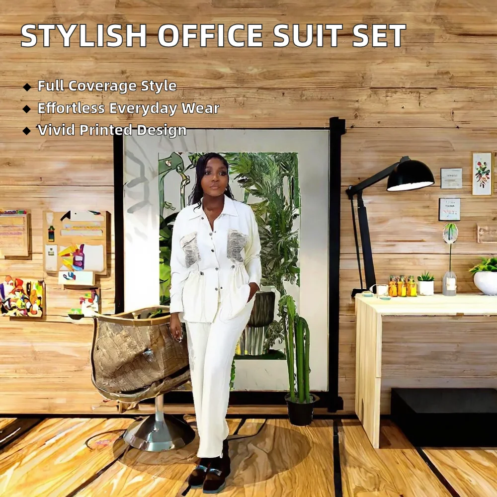 Customize Trendy Ladies Suits Casual Wear Outfits for Long Sleeve Printed Shirt and Wide Leg Pants Two Piece Set Eco-Friendly
