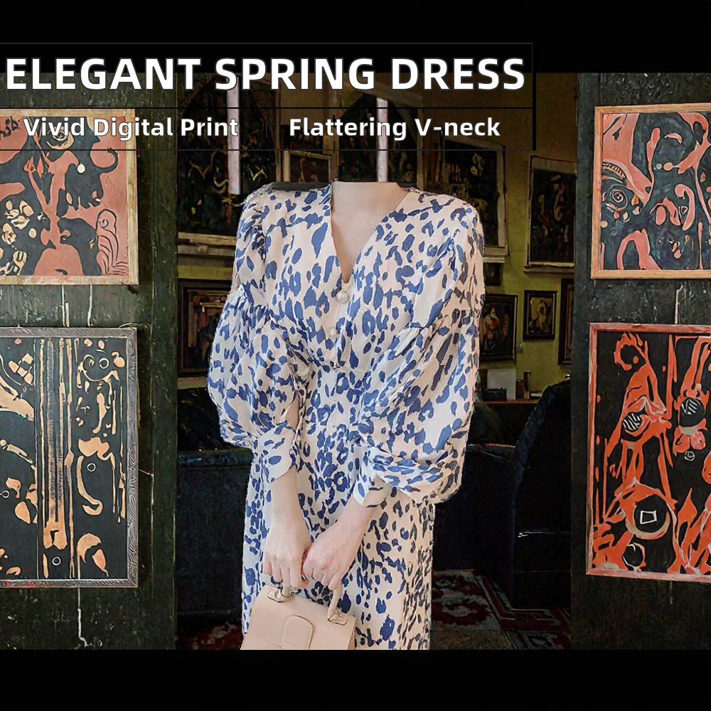 Customize Korean Early Spring Eco-Friendly Elegant Temperament V-neck Single Breasted Waist Show Thin Lantern Floor-Length