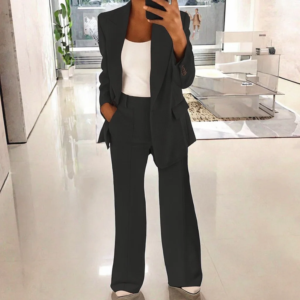 Customize Wholesale Fall Winter Casual Business Slim Fit Suit Outfit Bulk Women Notched Lapel Tailored Blazer Set Anti-Wrinkle