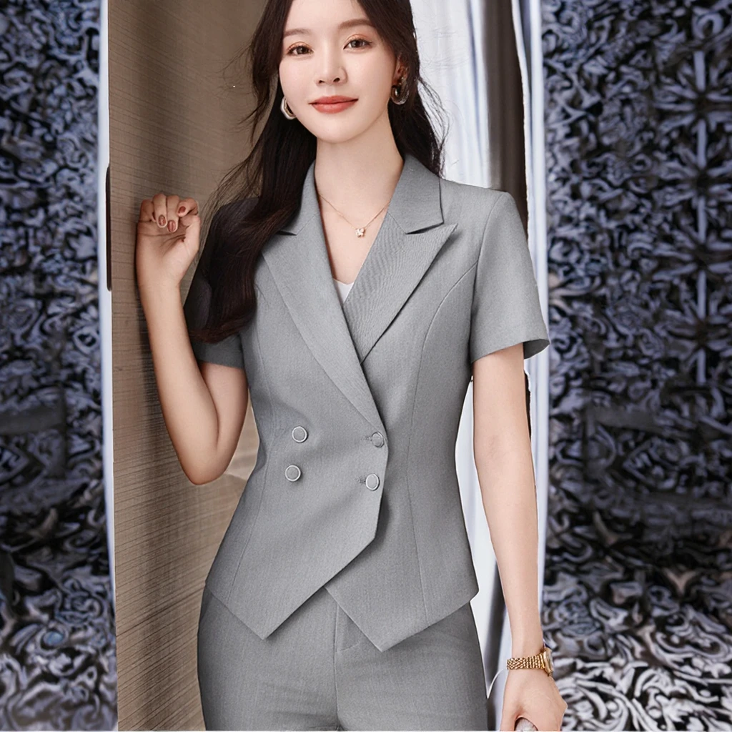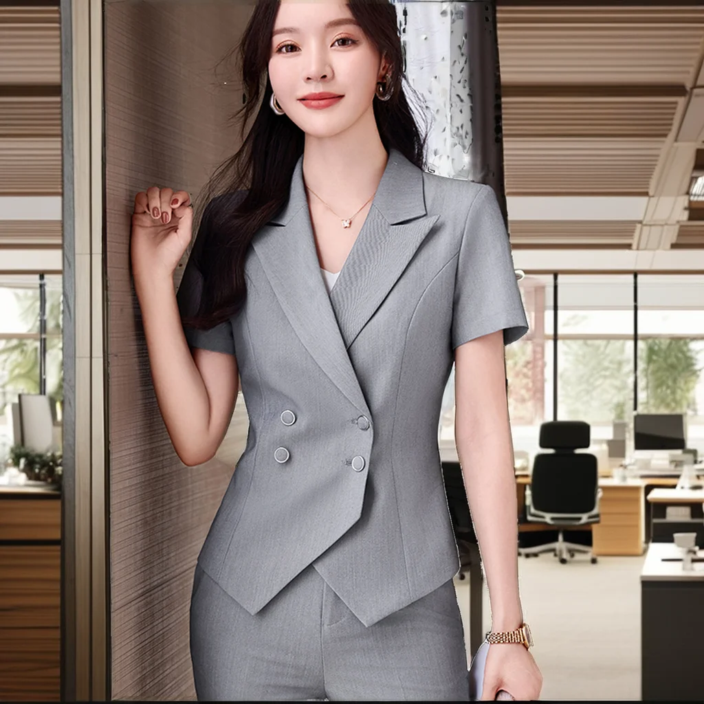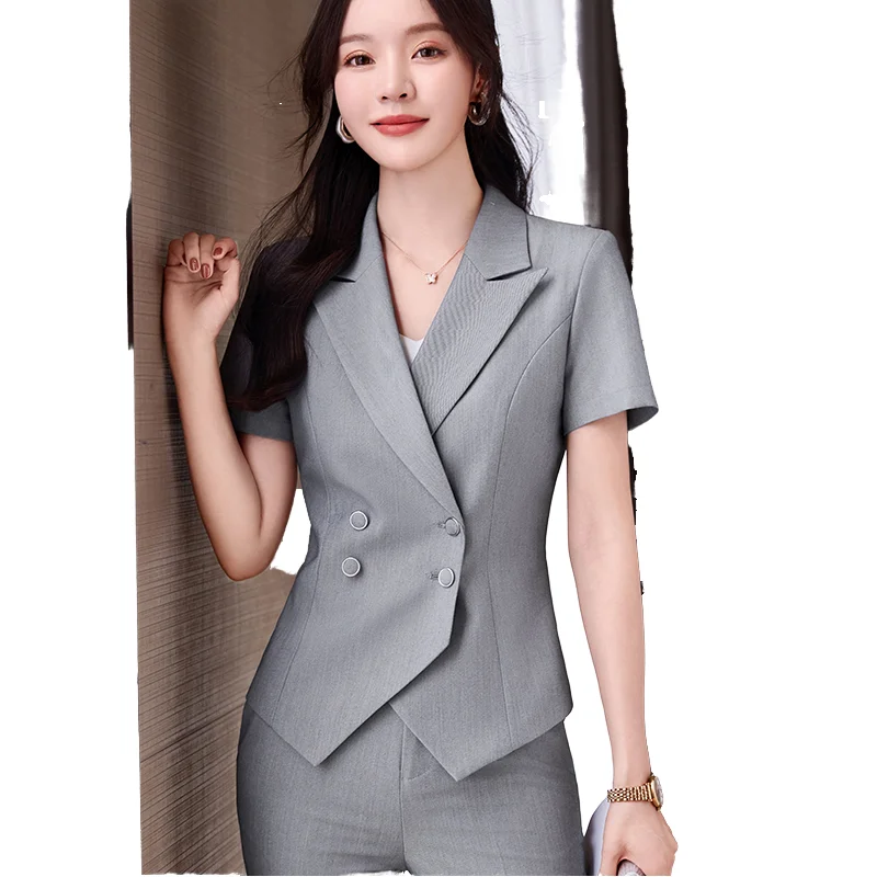 Customize Senior Professional Women's Summer Business Suits Short Sleeve Double Breasted Breathable Blazer Overalls
