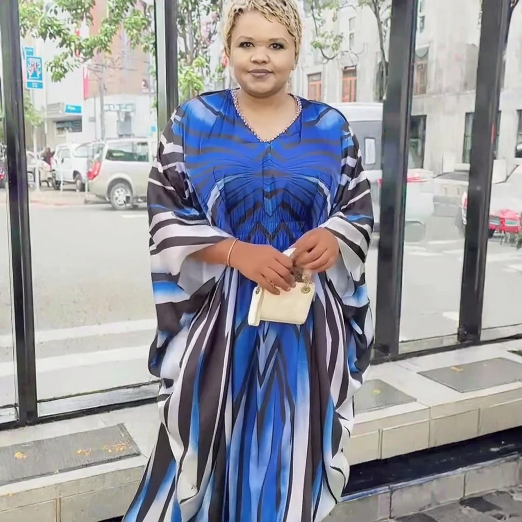ZYHT 73963 Matte Satin Printed Geometric Pattern Maxi Women Asymmetric One Shoulder Ruched Hem Women Dress