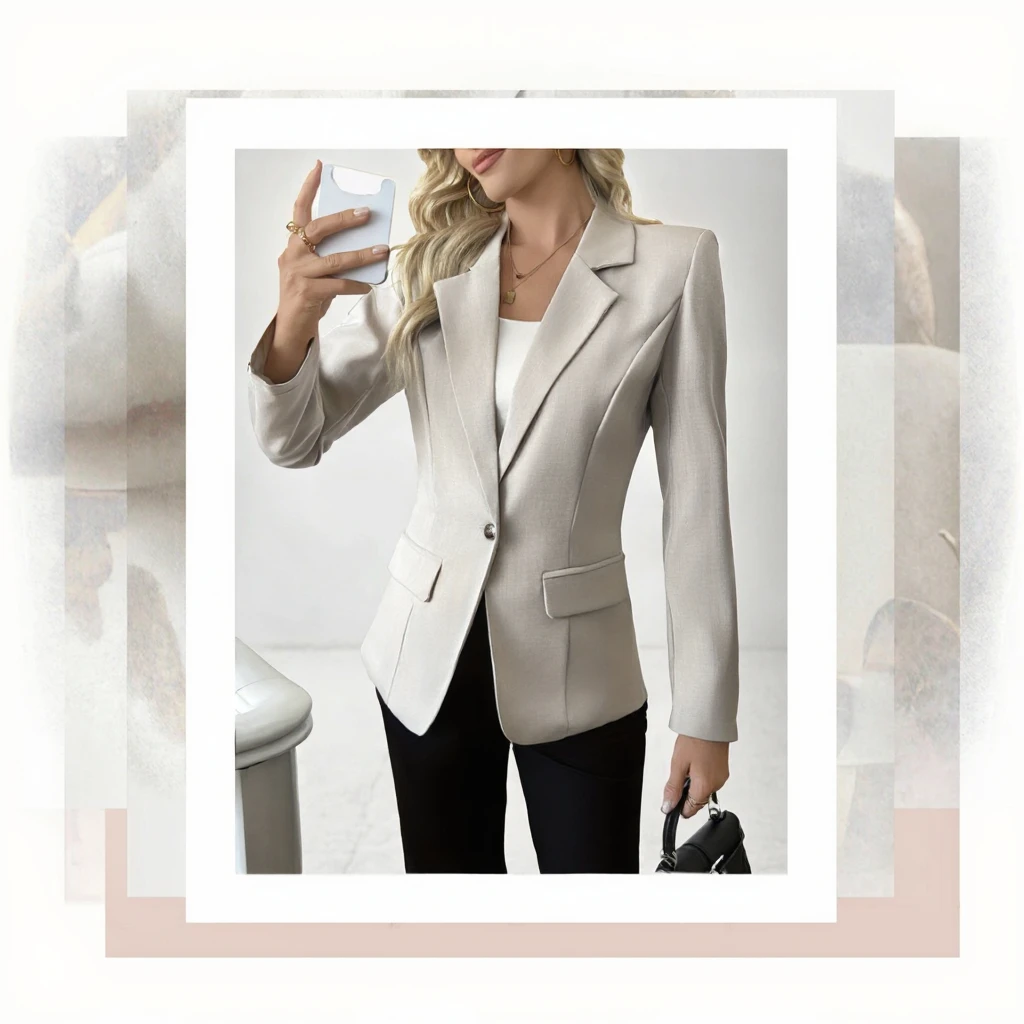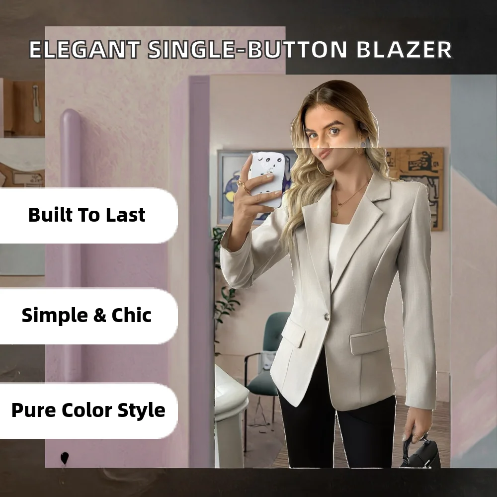 Customize Ladies' Single-button Closed Woven Suit Jacket Solid Color Single-breasted Lapel Breathable Elegant Style Suit