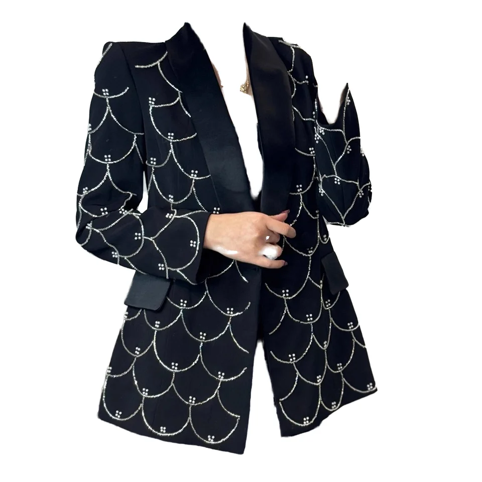 Customize New Casual Elegant V-neck Single Button Solid Woven Beading Anti-Wrinkle Polyester/Cotton Full Sleeve Blazer Women