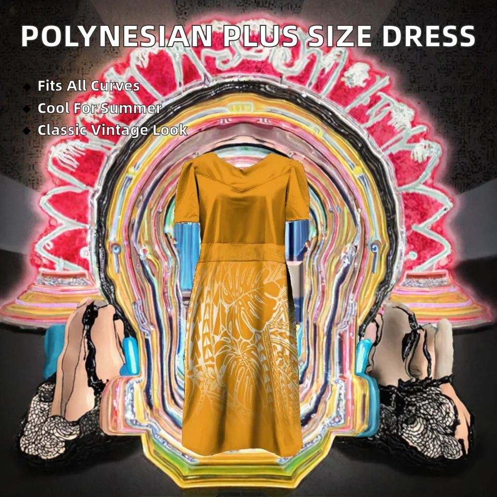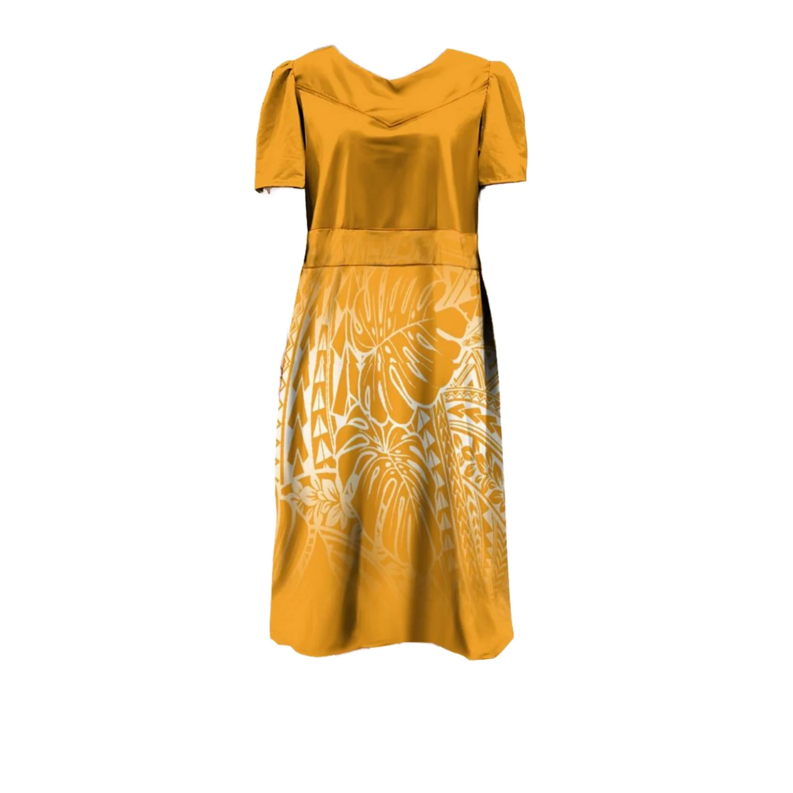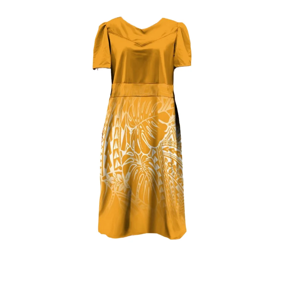 Customize New Design Customized Crew Neck Bell Sleeve Tiered Puffy Tonga Polynesian Print Casual Plus Size ODM Party Dress