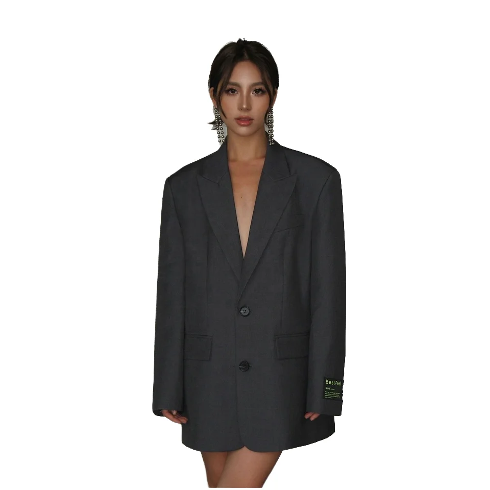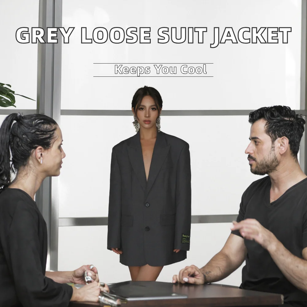 Customize Grey Animal Print Knitted Breathable Loose Fit Women's Autumn Suit Jacket 2025 New Korean Version