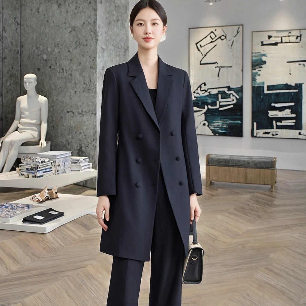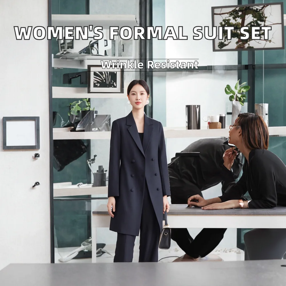 Customize Professional Women's Suit Sets Spring Autumn Formal Coat Advanced Sense Extended Trench Hotel Front Desk Tooling