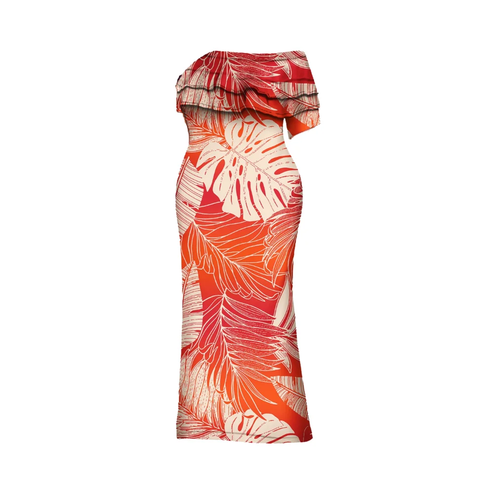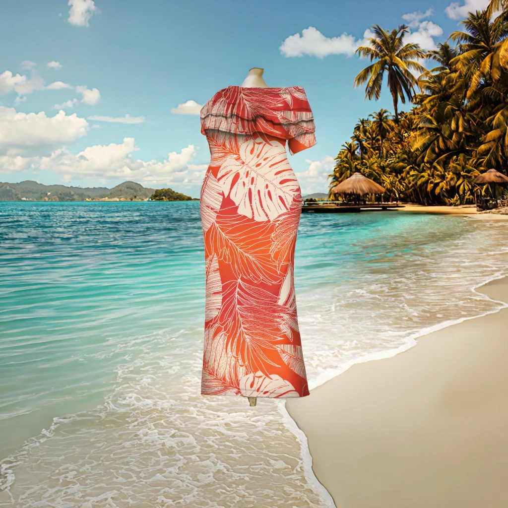 Customize Hawaii Polynesian Tribal Design Bodycon Maxi Dress Elegant Ruffle Shoulder Dresses Plus Size Pacific Island Clothes
