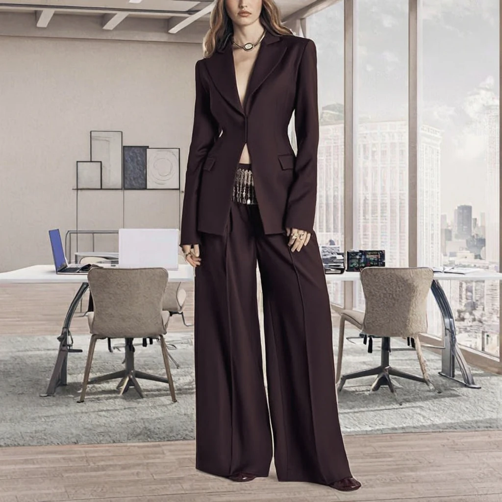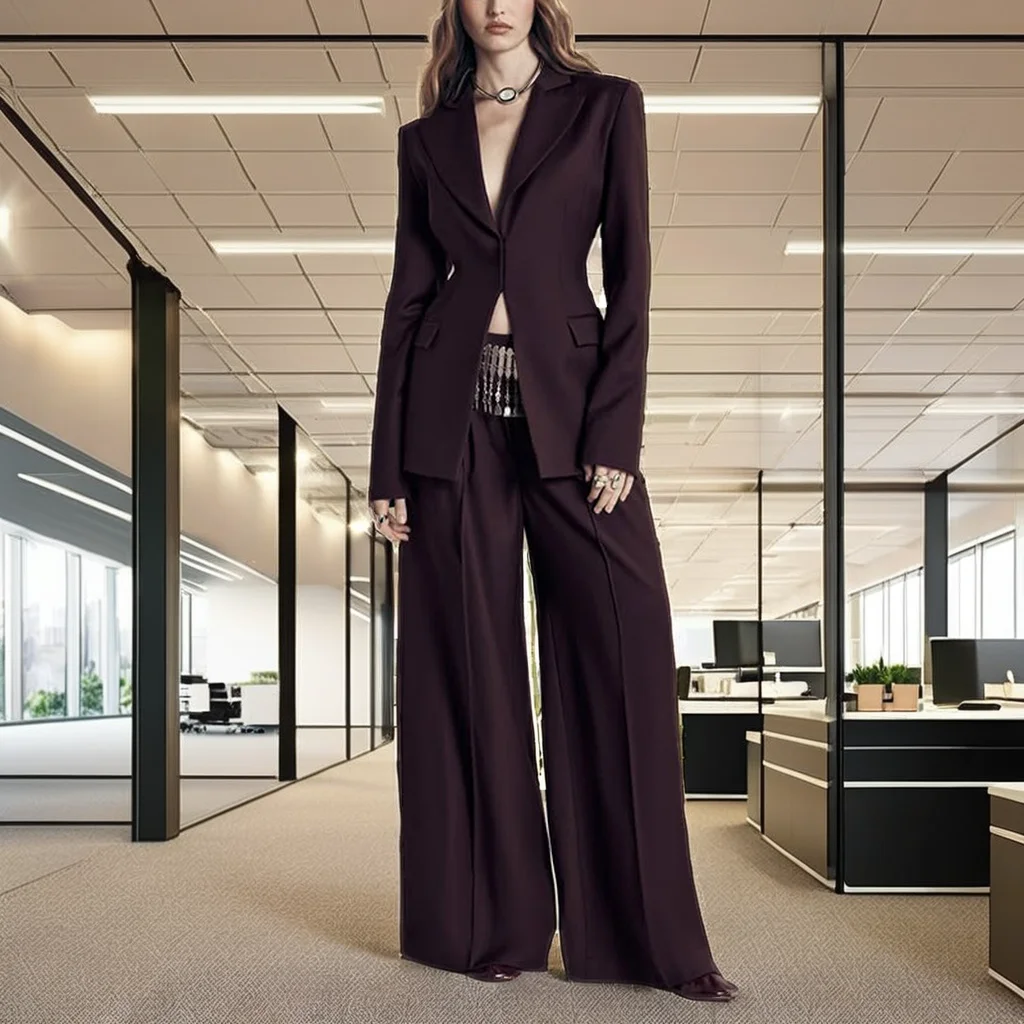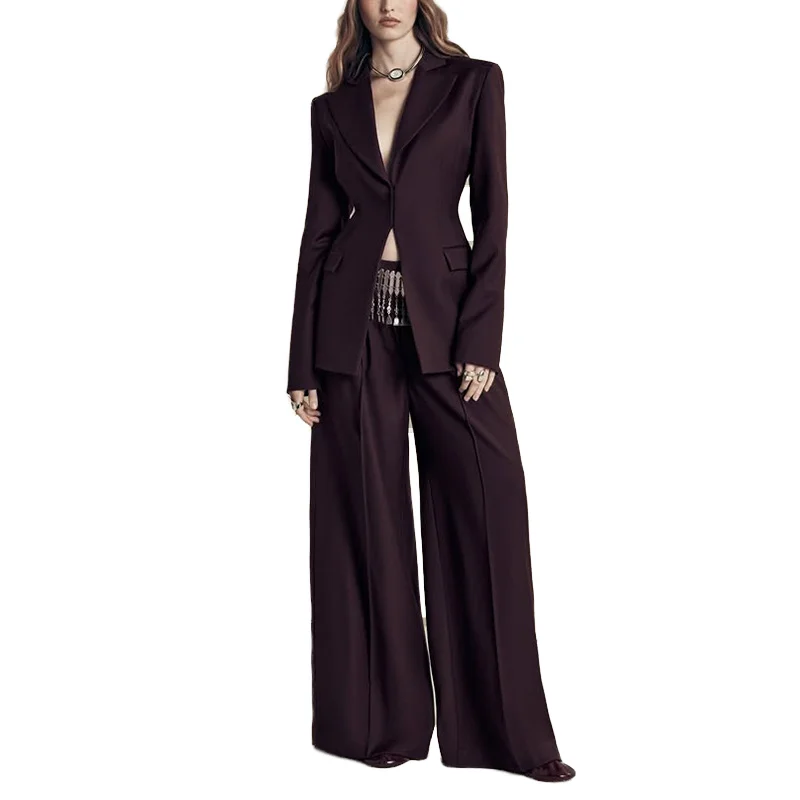Customize New Burgundy Women's Anti-Wrinkle Business Suits Two-Piece Set Solid Color Suit Jacket Wide-Leg Pants Polyester/Cotton