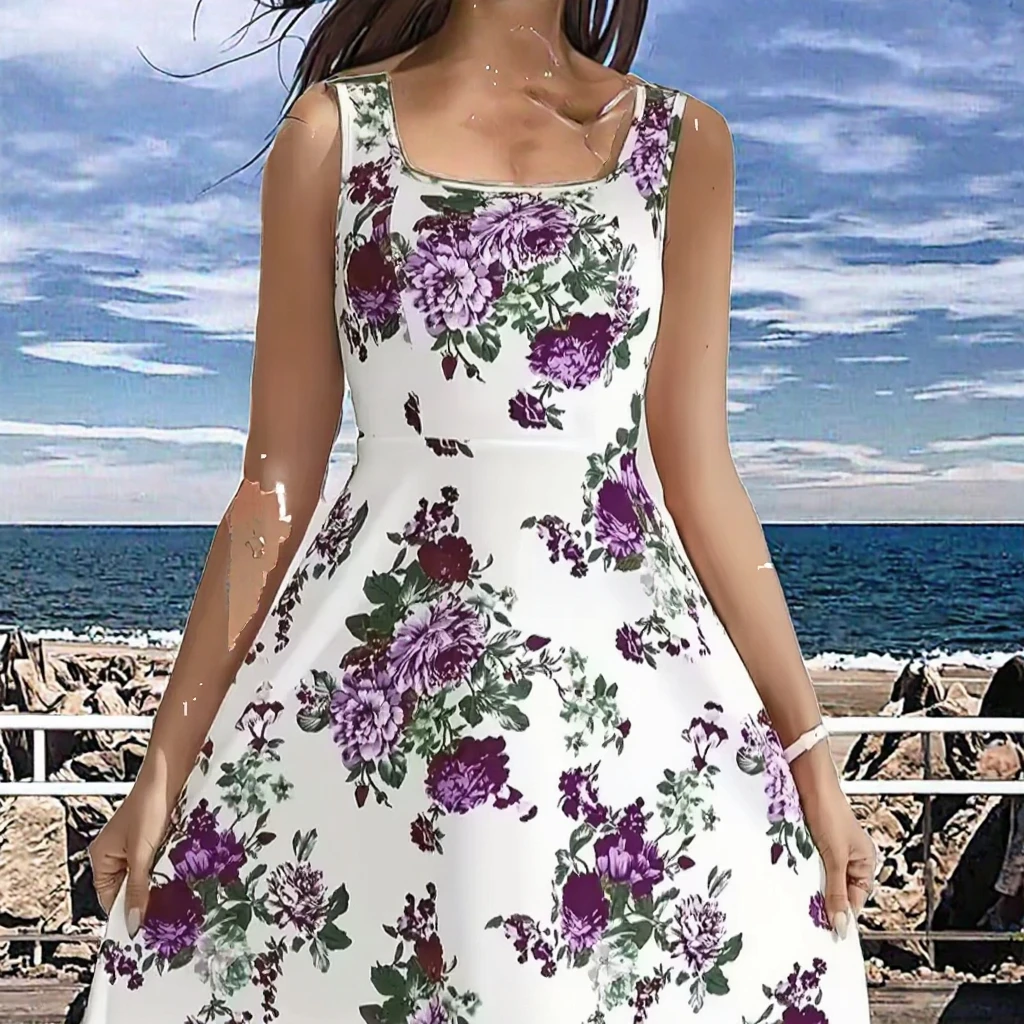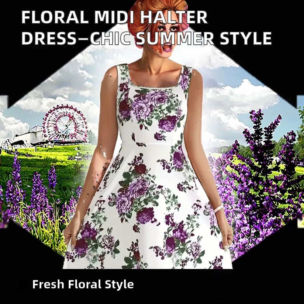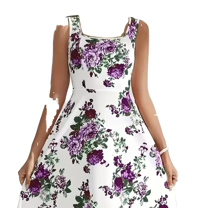 Customize Brand-new Casual Regular Fit Floral Printed Chiffon Midi V-neck Dress ForFashionable and Elegant for Office Use