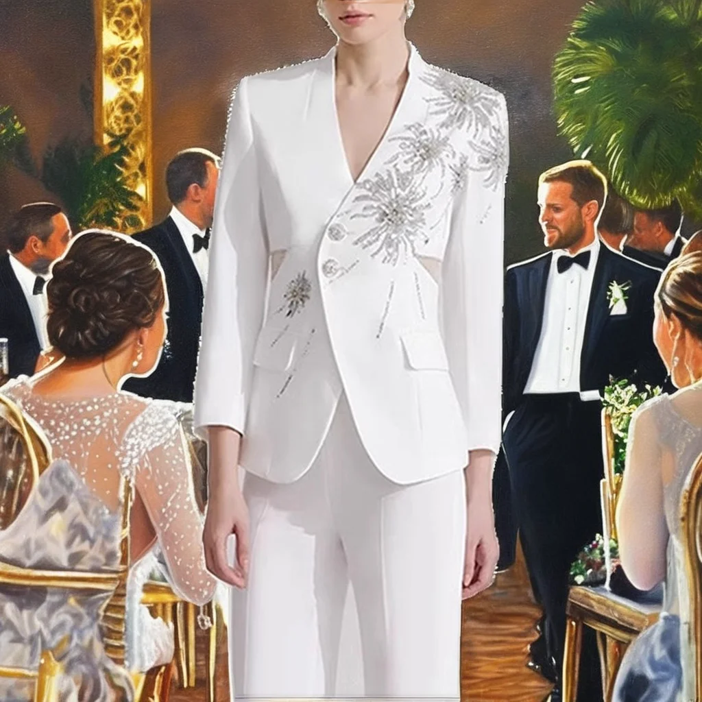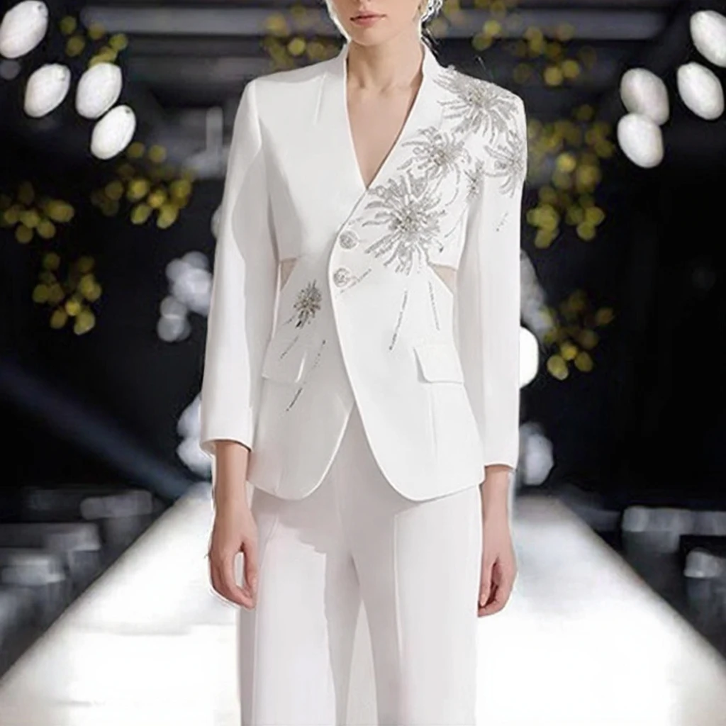 Customize V-neck Single Breasted Solid Woven Heavy-duty Design with Diamond Decoration Suit Jacket Blazer Sehe Fashionbisou