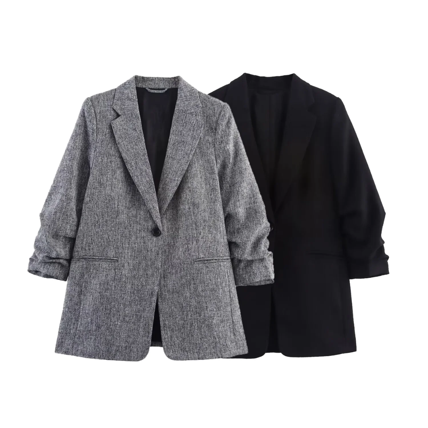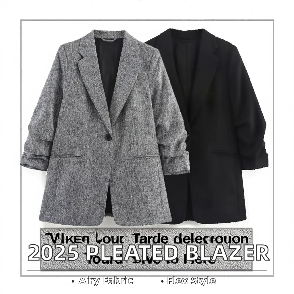 Customize Autumn Customizable Single Breasted Button Closure Notched Collar Solid Pattern Versatile Commuting Pleated Sleeve