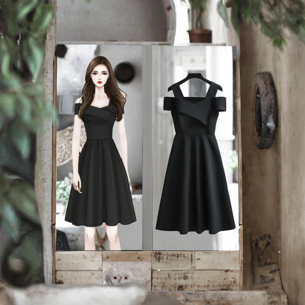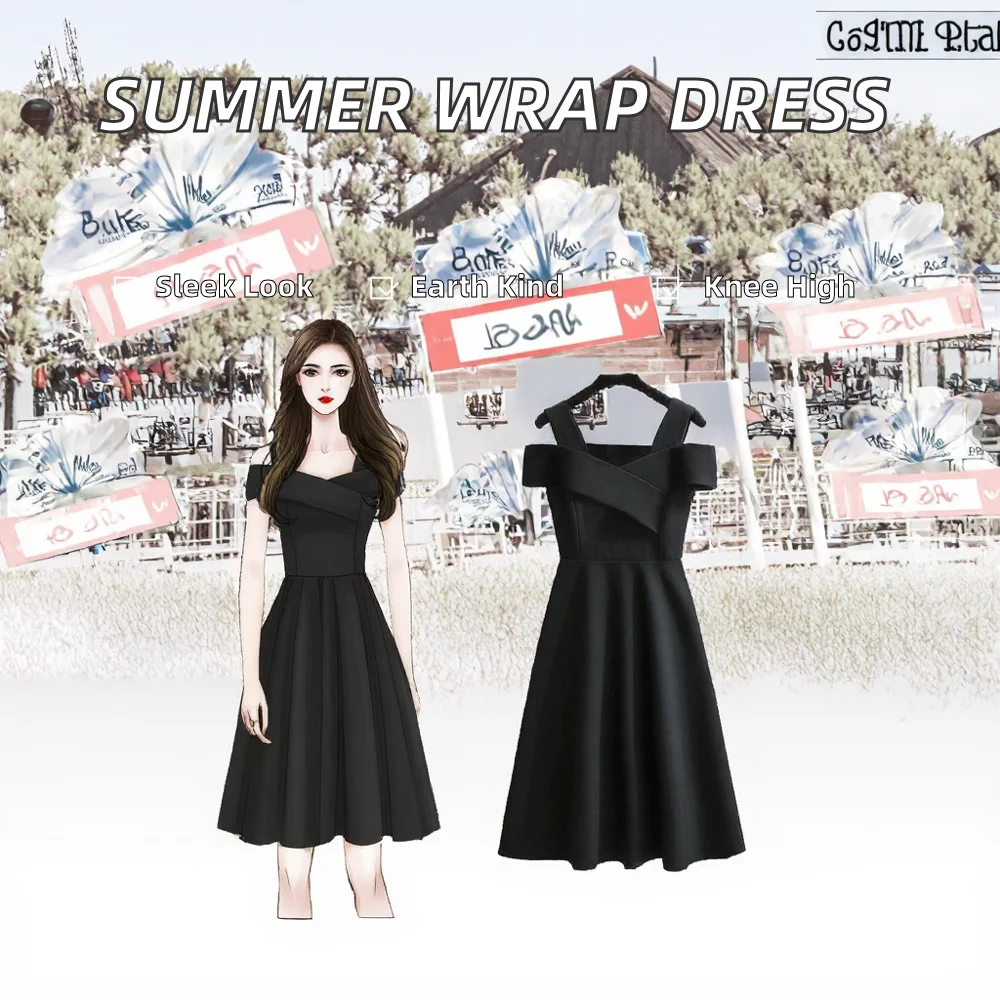 Customize Fashion Women Summer Casual Knee-Length Breathable Washed Wrap off Shoulder A-Line Dress Spaghetti Strap