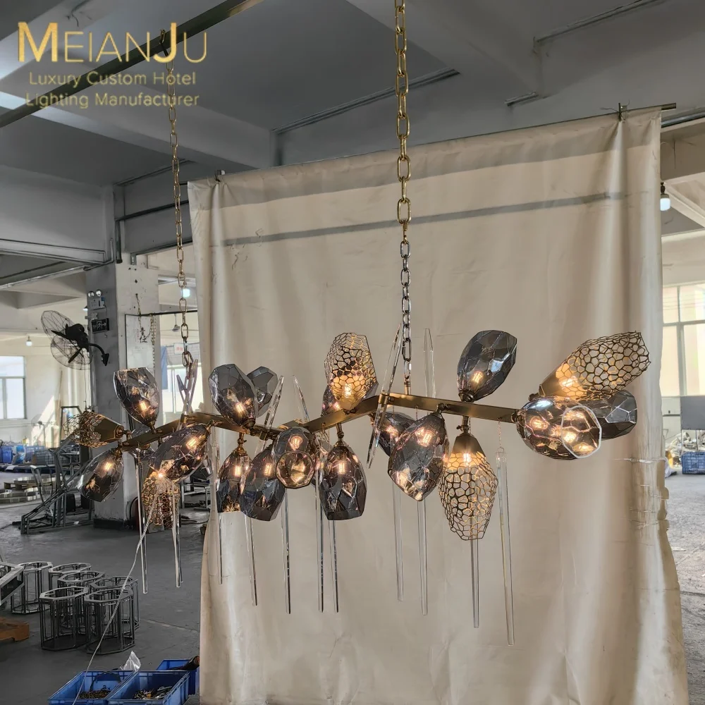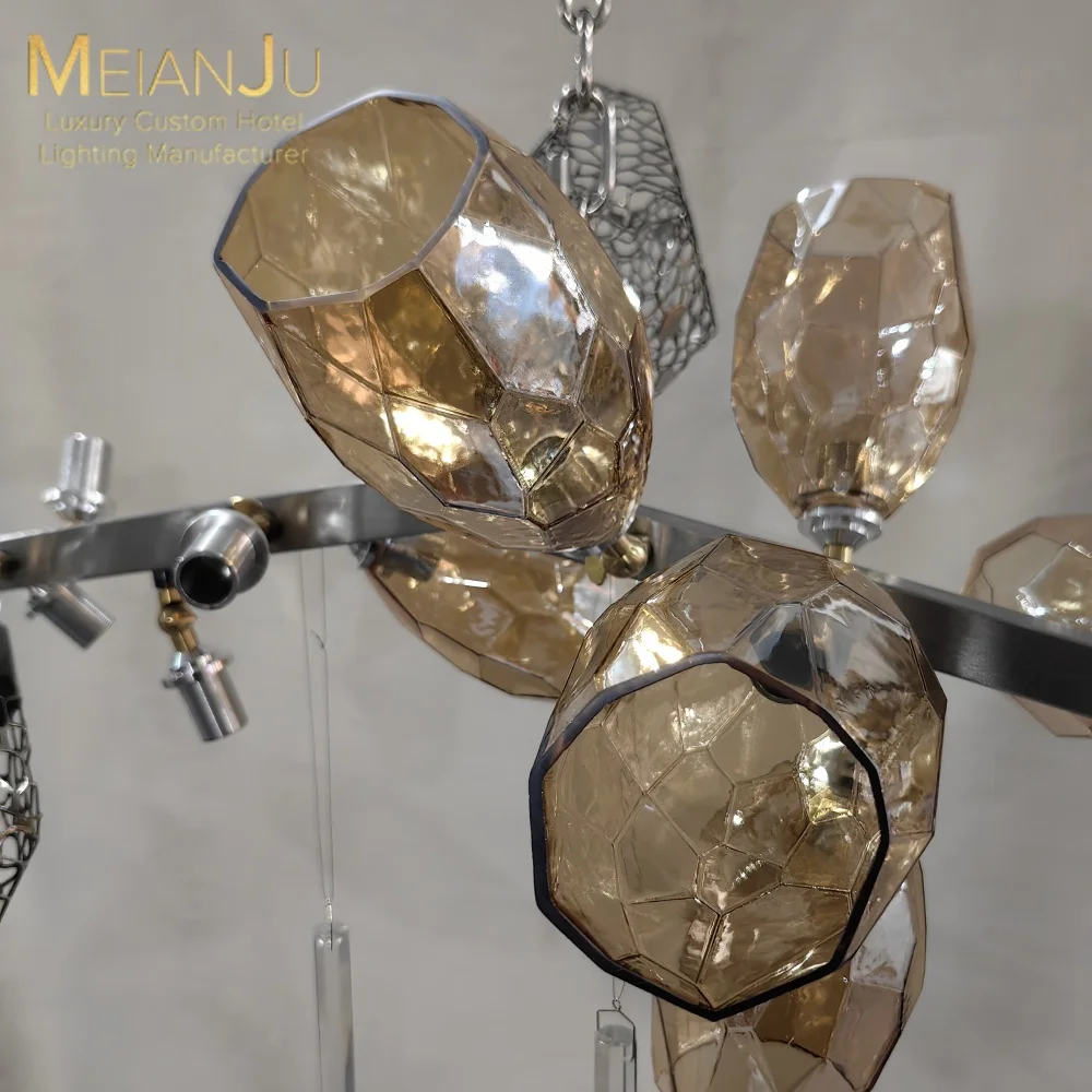 Wedding Hall Chandelier Hotel Hanging Pendant Light Customized Amber Crystal Chandelier Lighting for Lobby