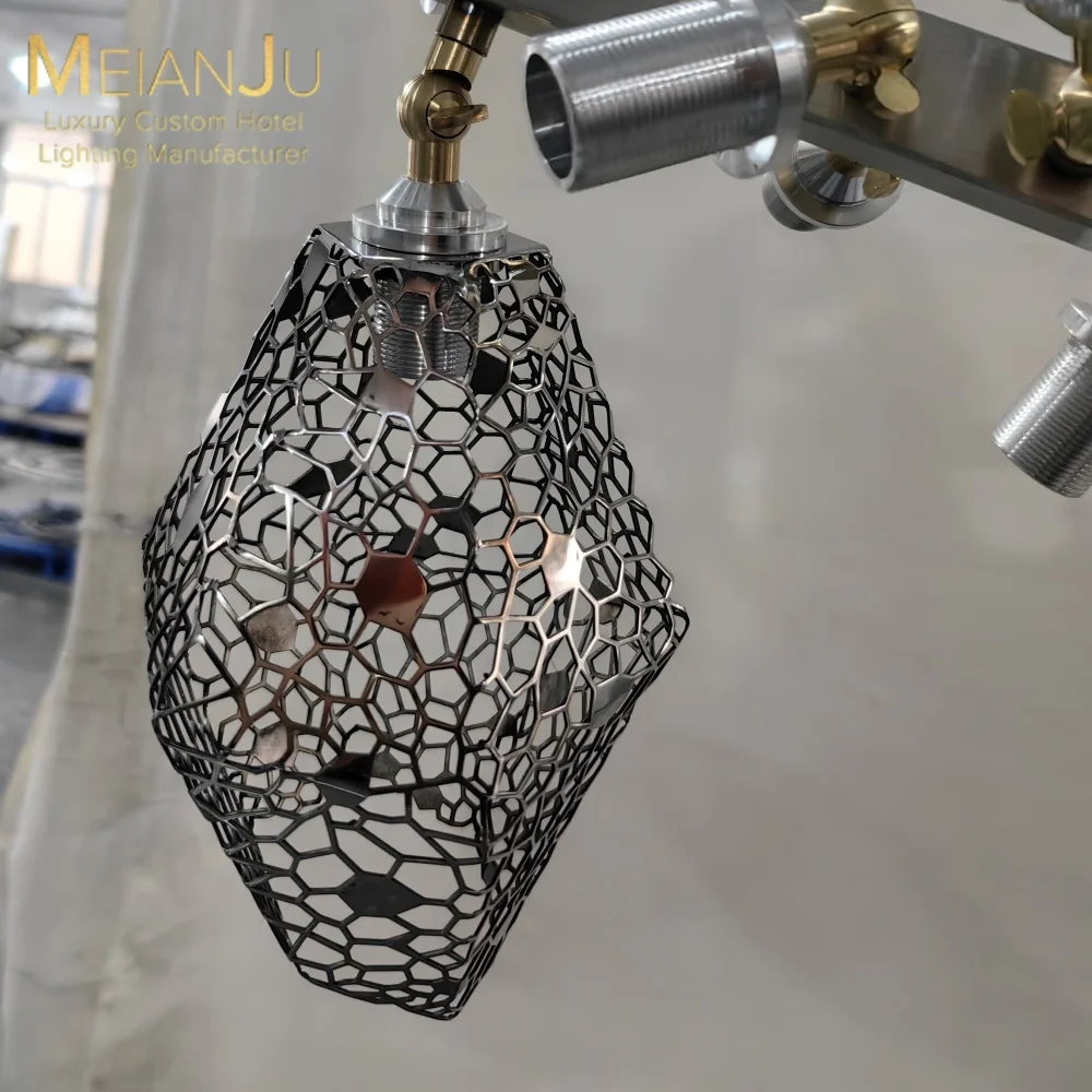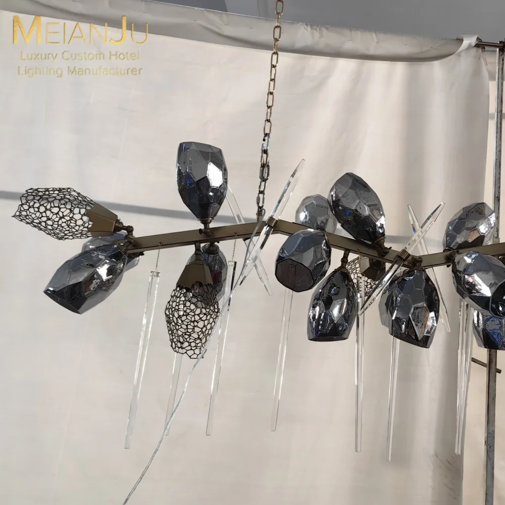 Luxury Electroplated Glass Hex Crystal Geometric Sculptural Pendant Rod Chandelier for Hotels and Villas