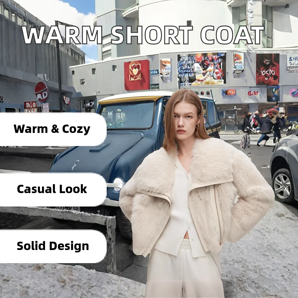 Customize Wholesale Jacket Waterproof Woven Casual Thick Warm Fashionable Regular-Length Sheep Shearling Jacket Fur Trim Button