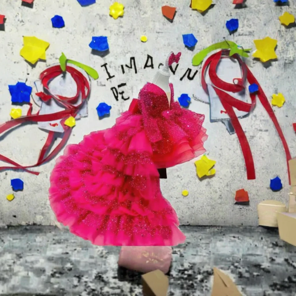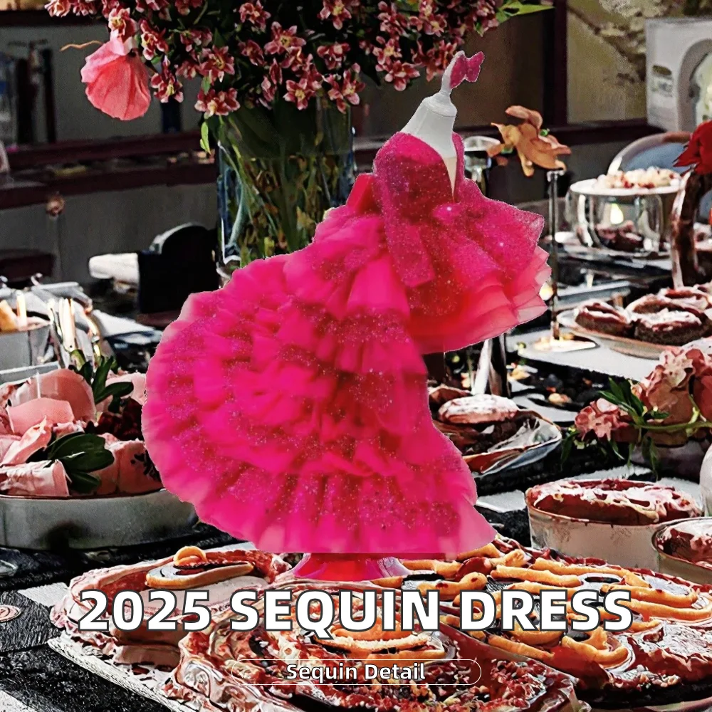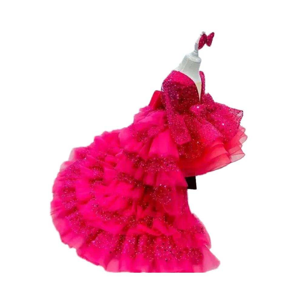 Customize Sequin Ball Gown for Girls Children's Tulle Tutu Dress Long Train for Piano Birthday Wedding Costume Flower Girl Dress