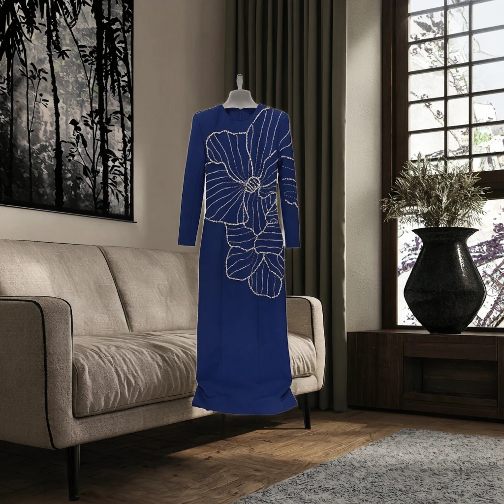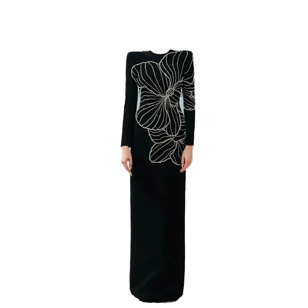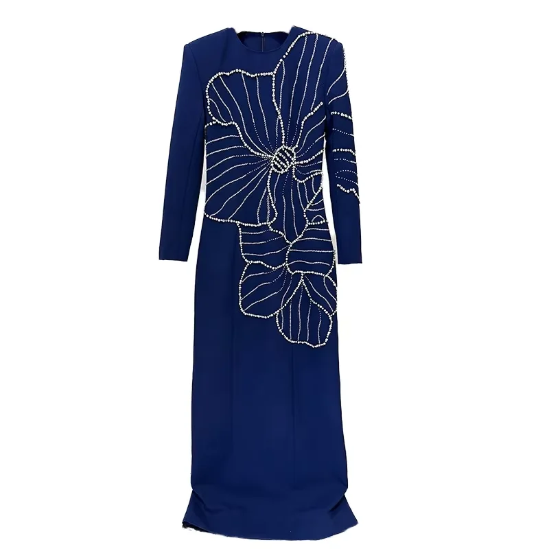 Customize Boutique Clothing XXXL Plus Size Beaded Diamond Long Sleeve Long Dress Elegant Evening Party Women's Dresses