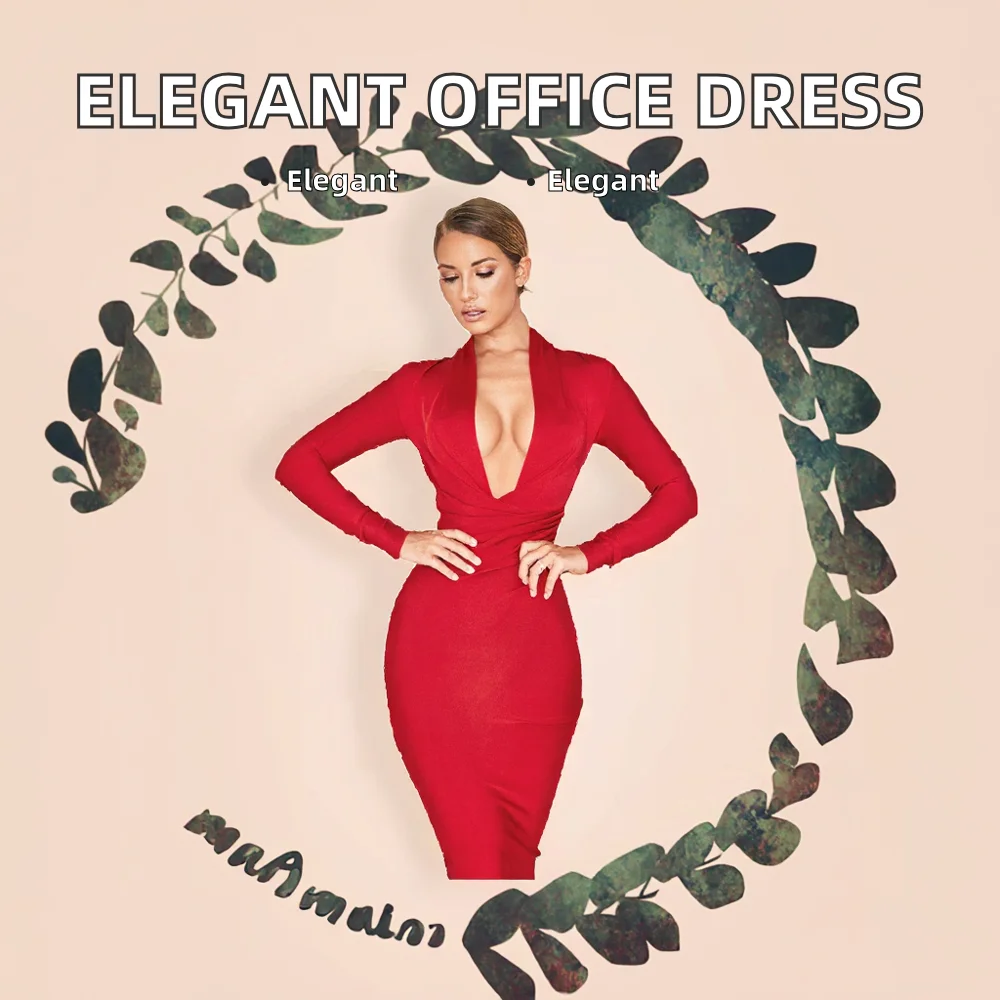 Customize Elegant Office Midi Dress Long Sleeves Knee-Length Formal Autumn Season Solid Pattern Natural Front for Office Lady