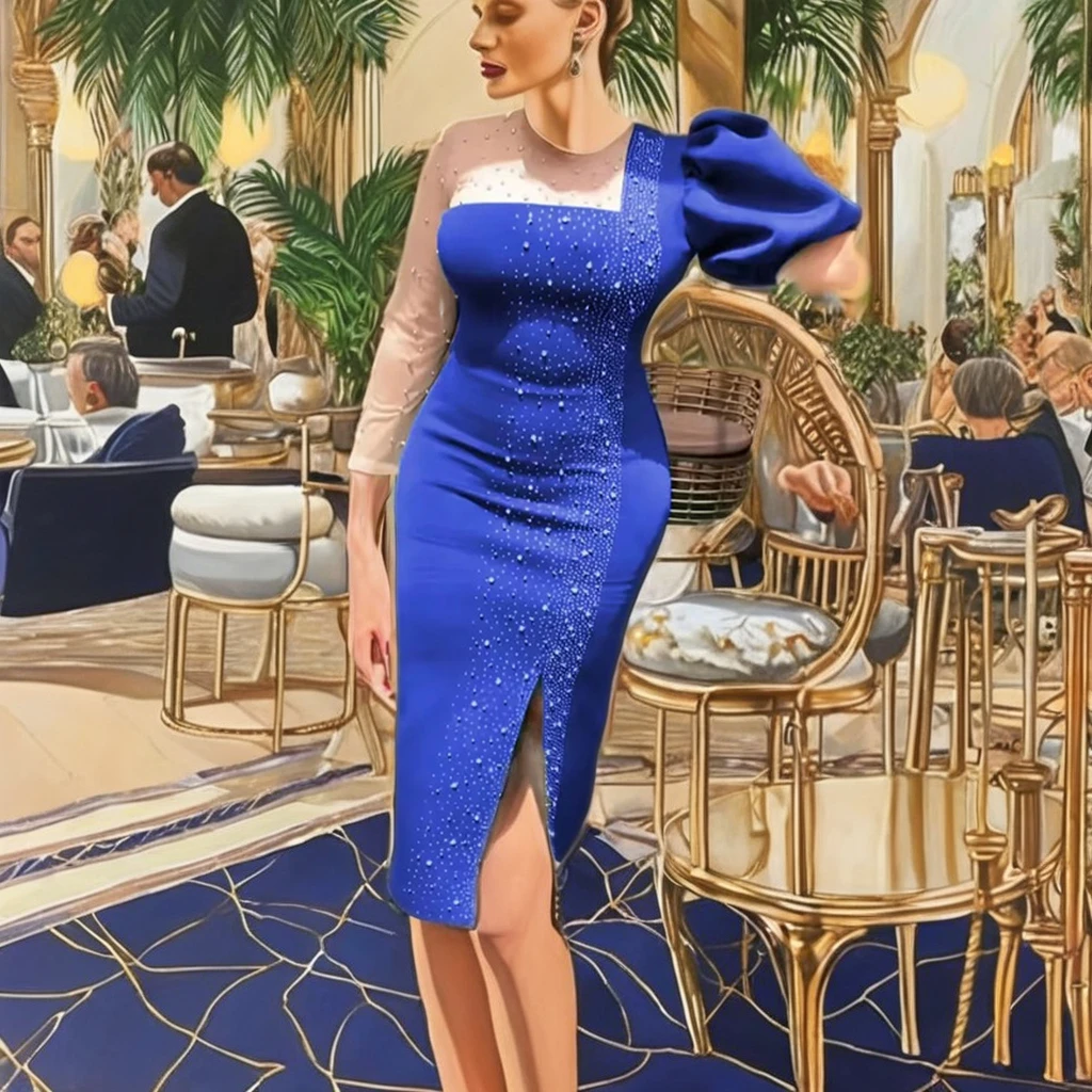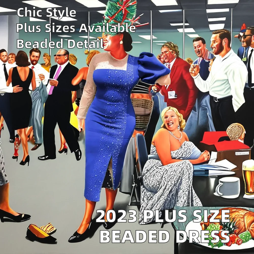 Customize European American Kaftan Style Elegant Irregular Office Pencil Skirt Casual Beaded Evening Dress for Women Plus Size