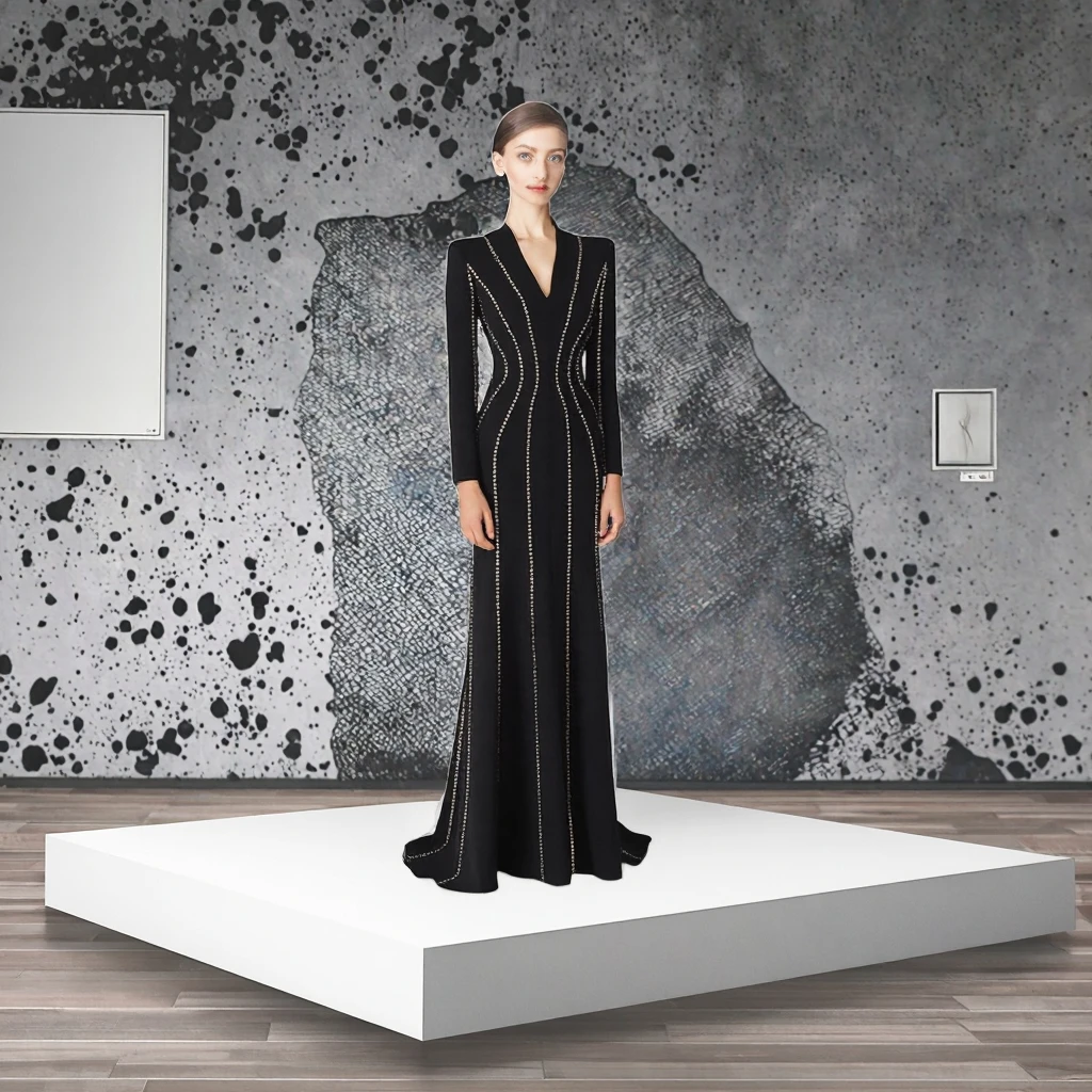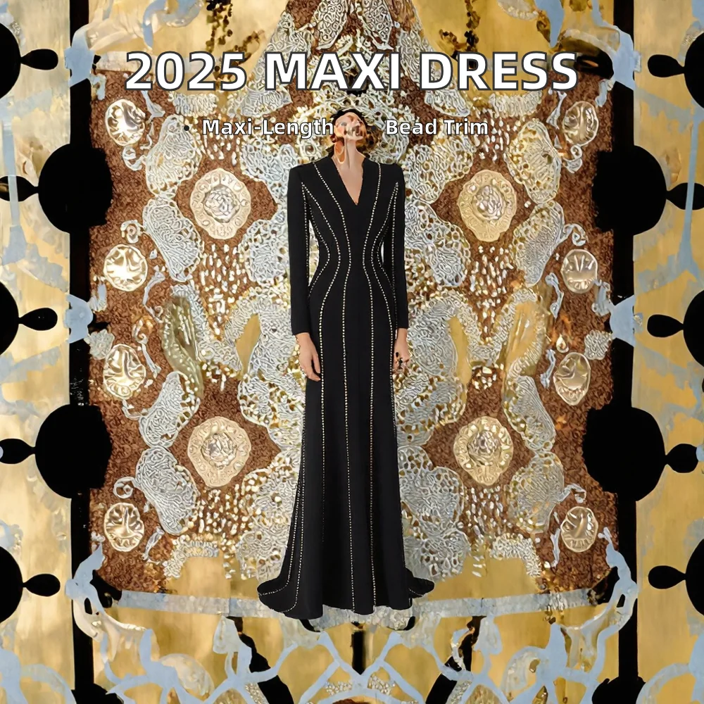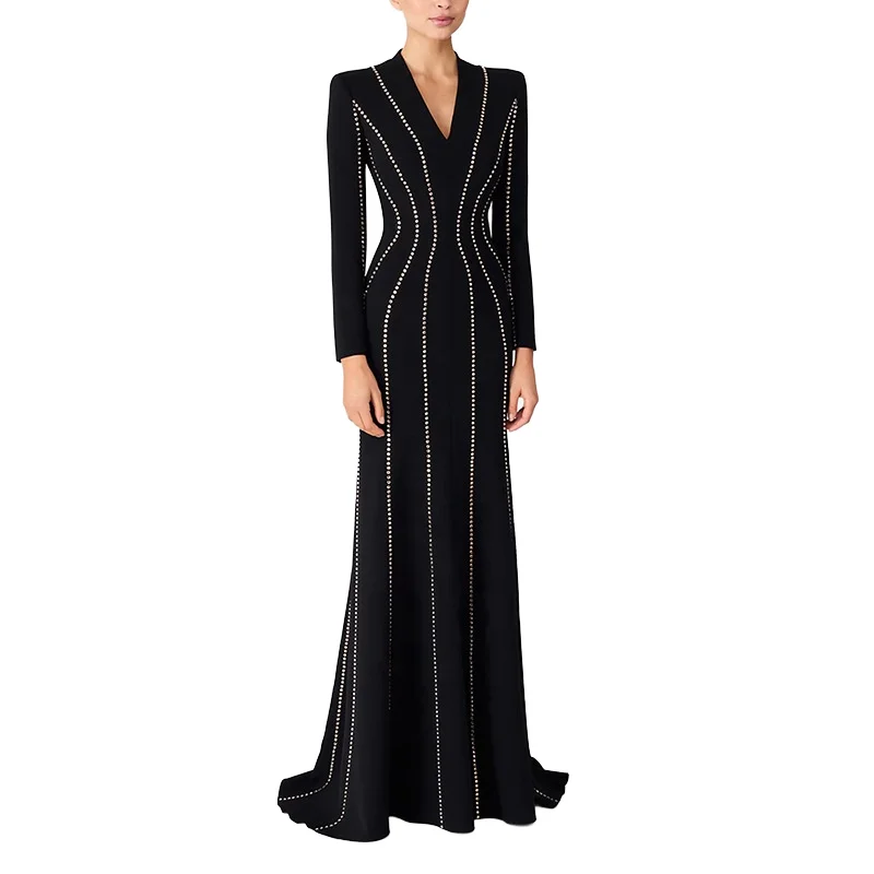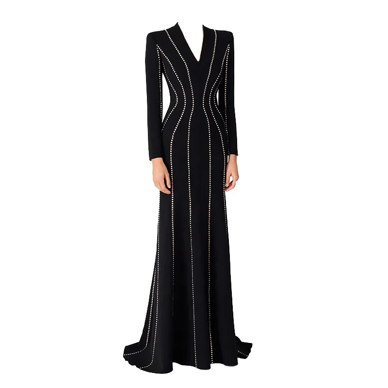 Customize WHOLESALE Newest Designer High Street Fashion Women's Autumn Winter Formal Long Sleeve Appliques Beading Maxi Dress
