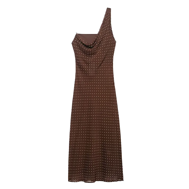 ZYHT 73963 Matte Satin Printed Geometric Pattern Maxi Women Asymmetric One Shoulder Ruched Hem Women Dress