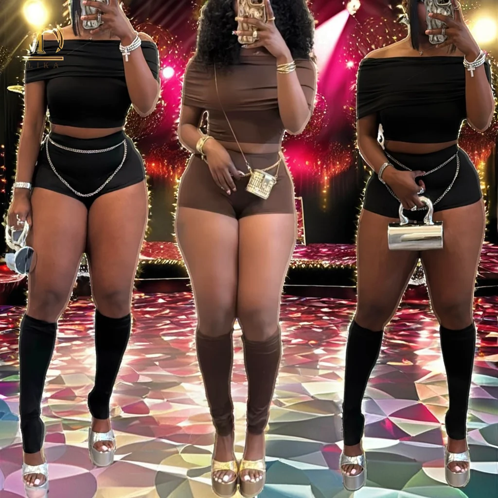 Customize Women's Trendy Summer Three-Piece Set Black Strapless Top Shorts Calf Socks Sexy and Leisurely Above Knee Clothing