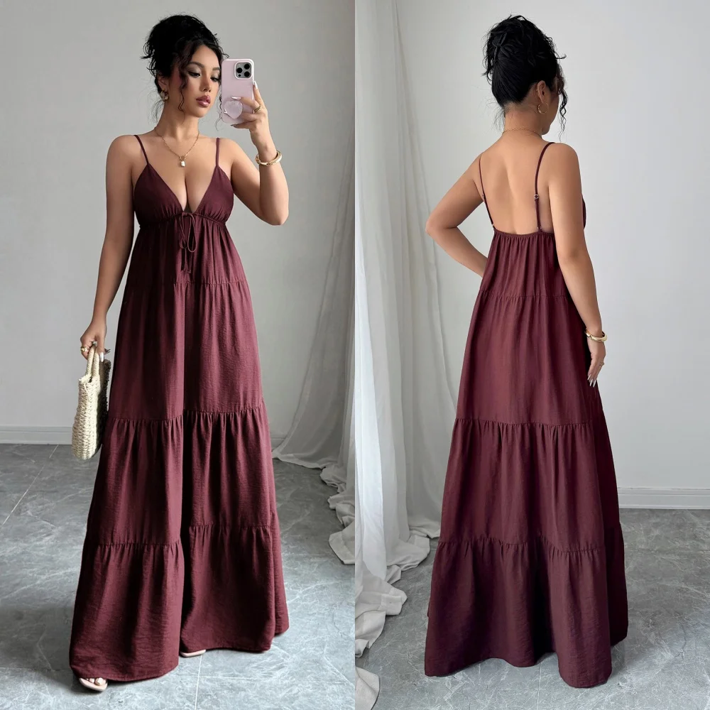 D&M Fashion Custom Greek Goddess Boho Sexy Deep V-neck Dress Open Back Bohemian Cotton Linen Maxi Casual Dress for Women