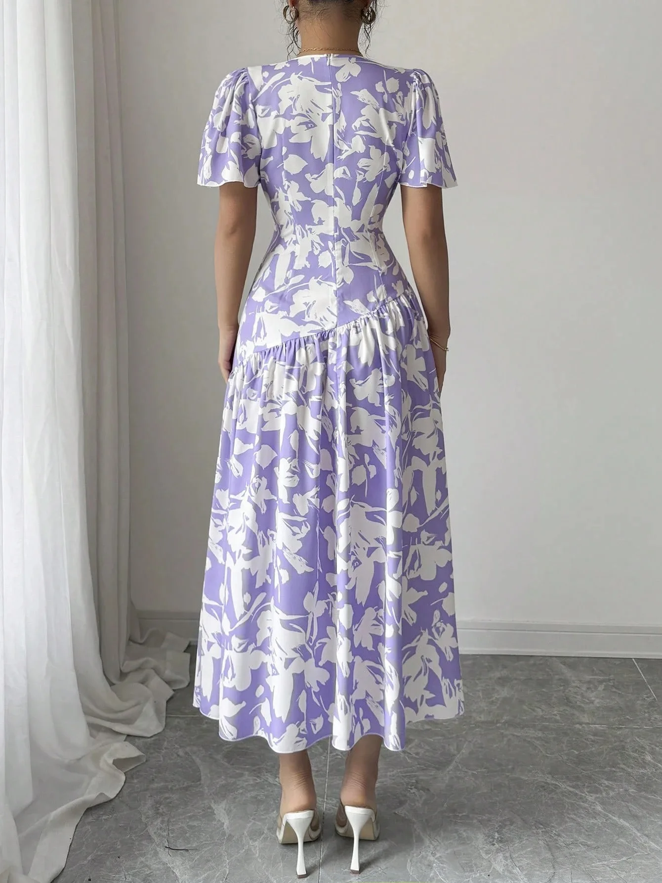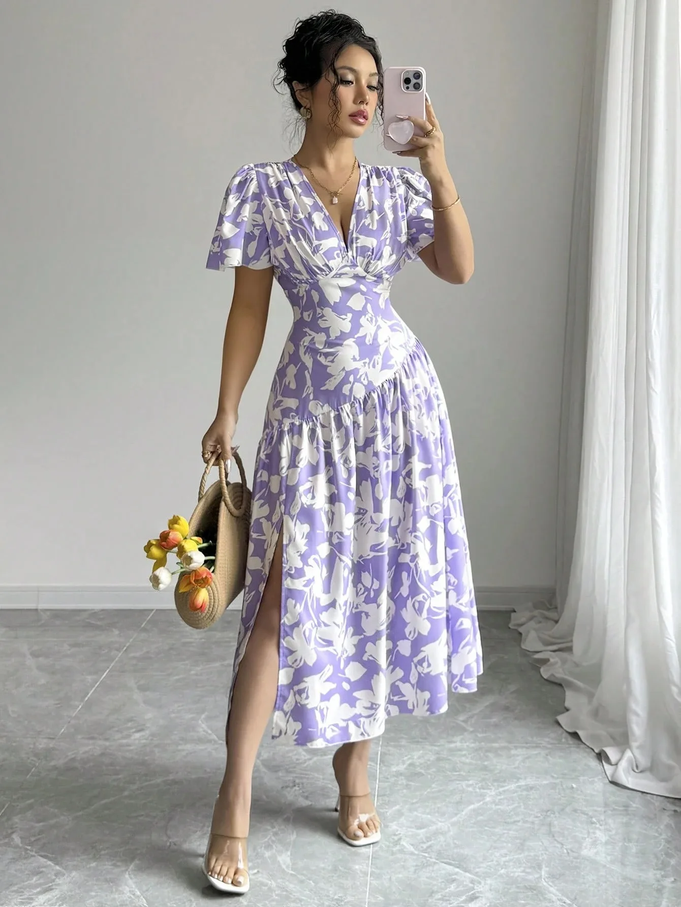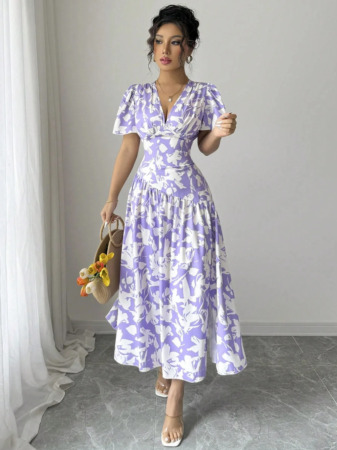 D&M Undefined Brand Custom Summer Clothes for Women Dresses V-neck Floral Print Short Sleeve Casual Elegant Summer Maxi Dress