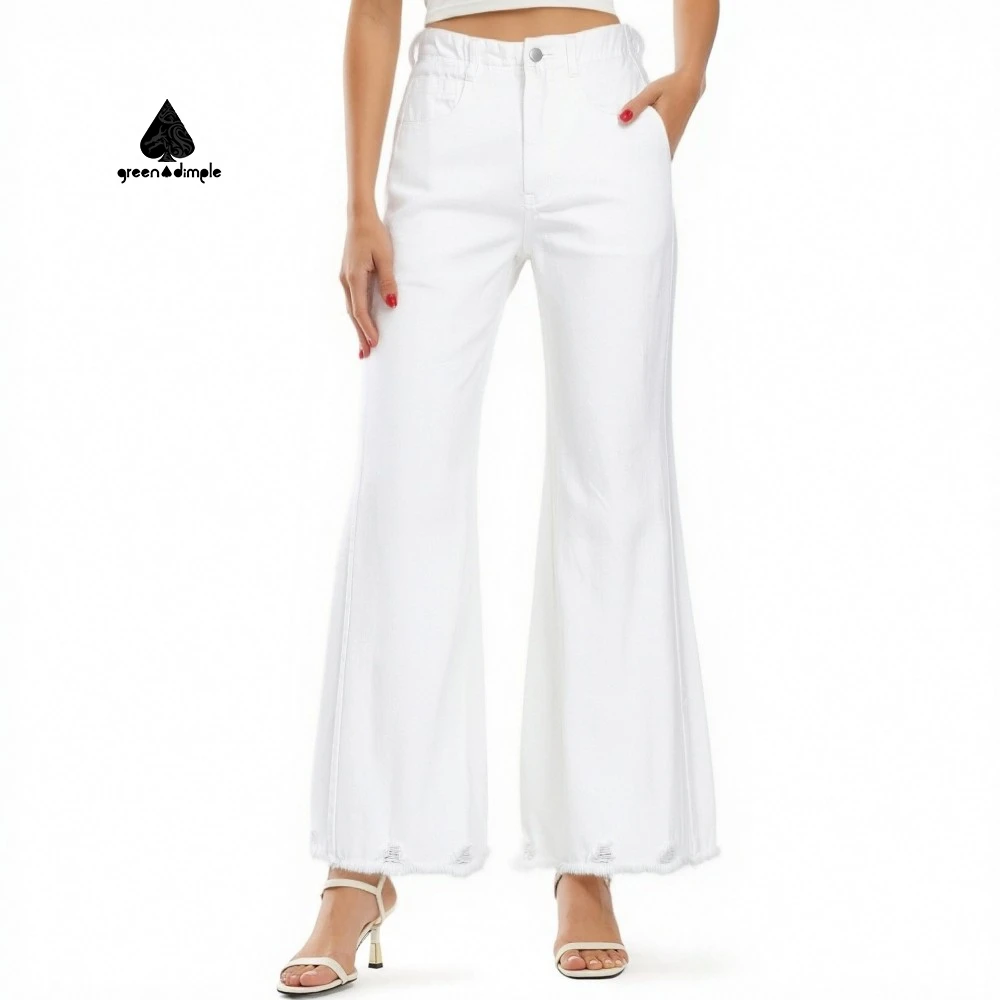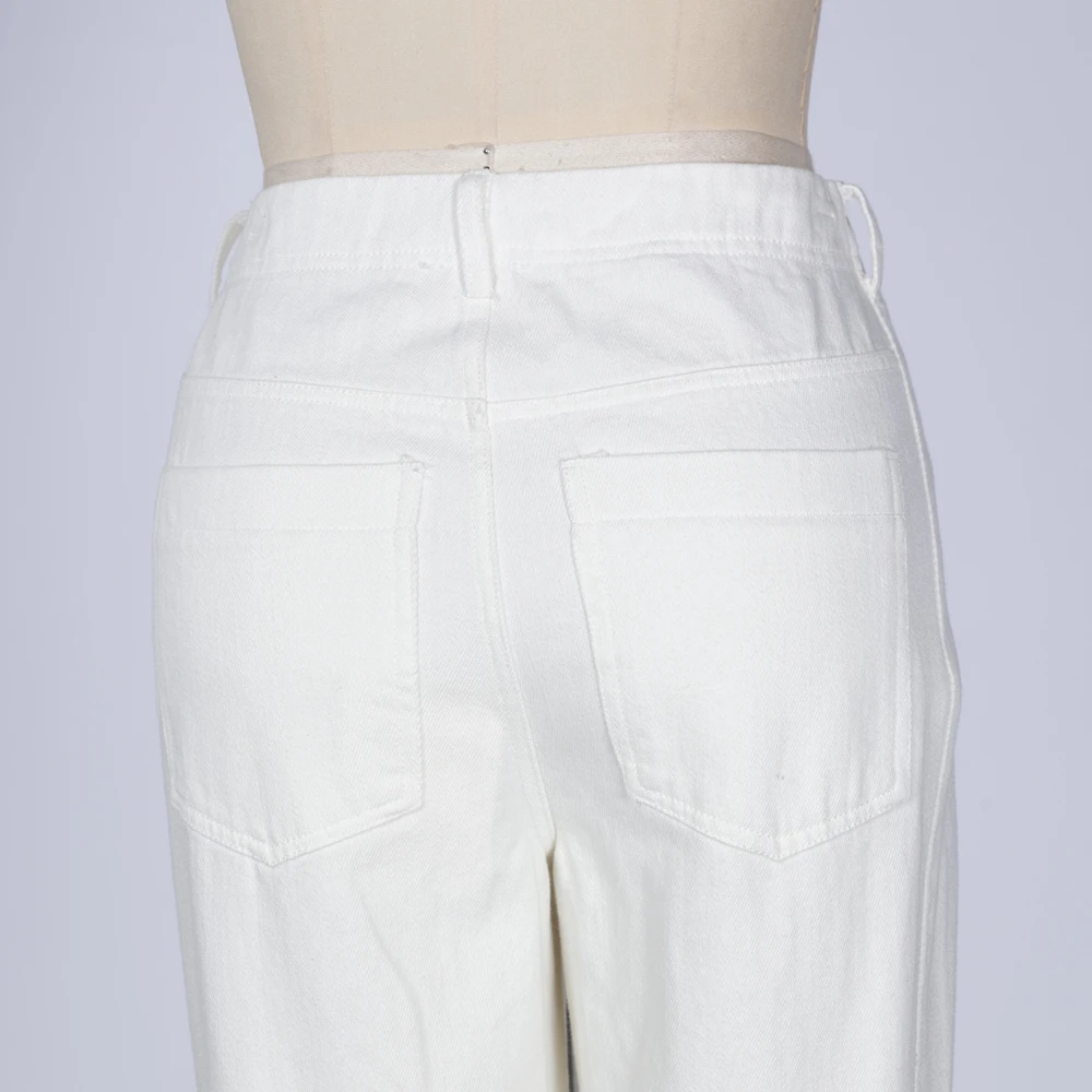 OEM Custom Logo Women's Boot Cut Flare Denim Denim Pants White Breathable Solid Rivet Waist for Summer Autumn Casual Jeans