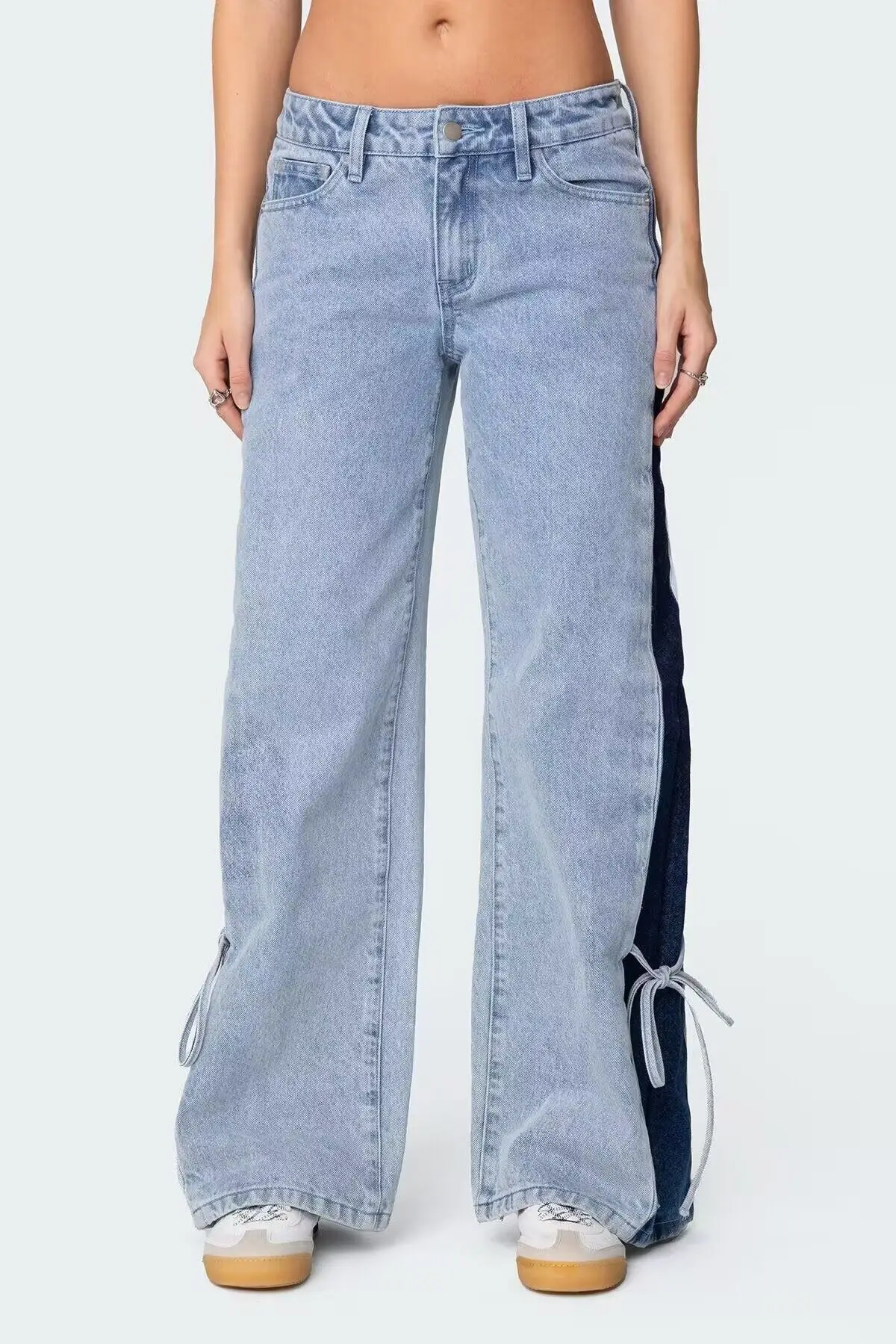 Custom Women's High Waist Comfortable Loose Boyfriend Jeans New Contrasting Color Straight Wide Leg Denim Trousers for Women