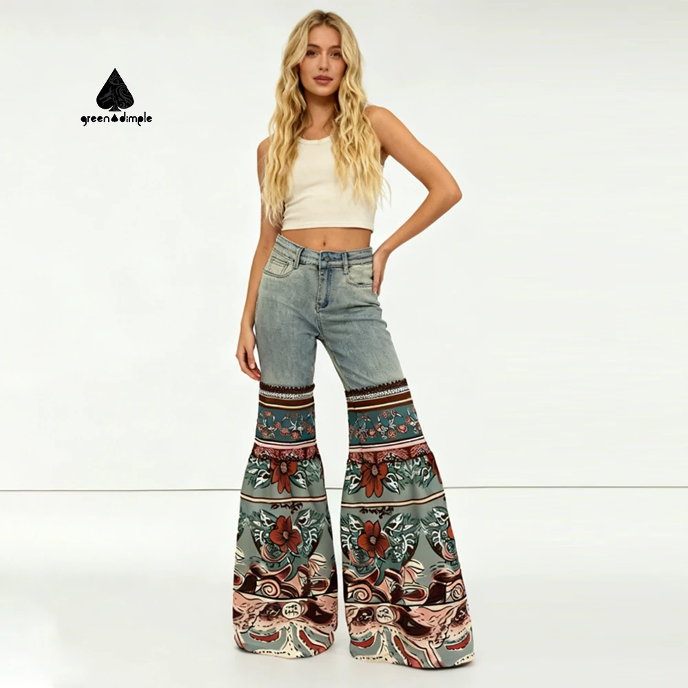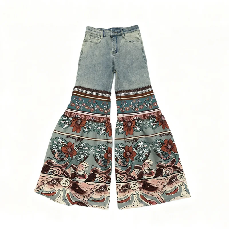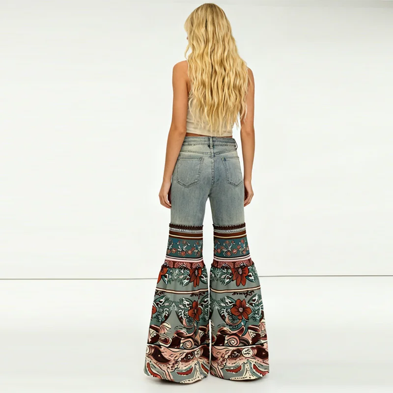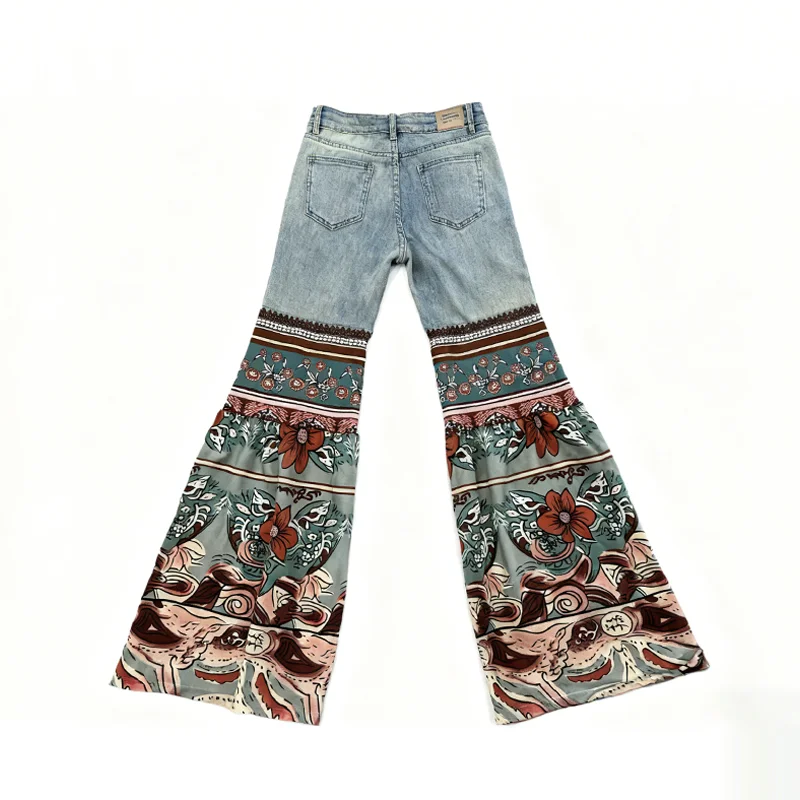 High Quality Para Mujer Jeans Pant Manufacturer Custom True Religion Designer Splicing Flare Leg Jeans Femme Trousers for Women