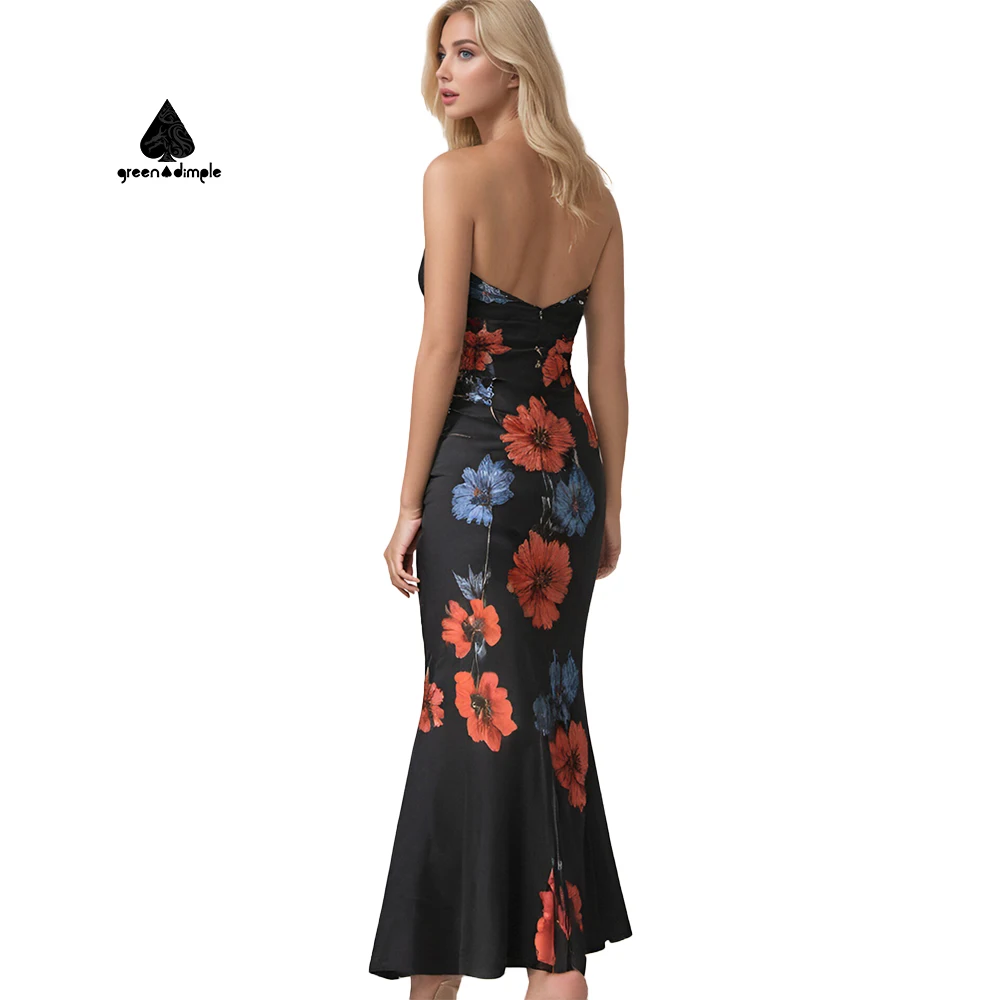 ZYHT 73957 Hot Selling Women Lady Printed Satin Beige Mermaid Fish Tail Floor Length Party Cocktail Evening Dress Gown