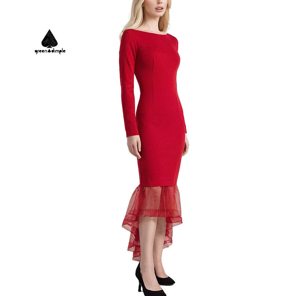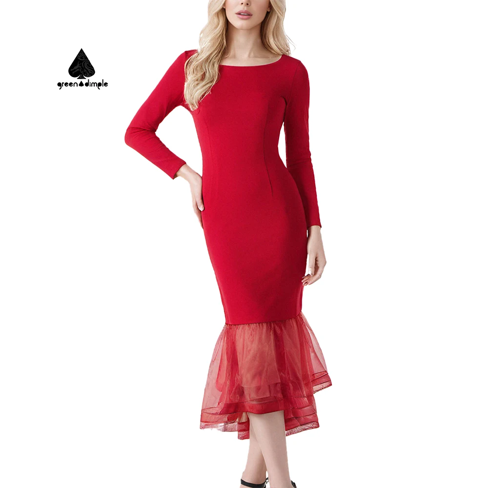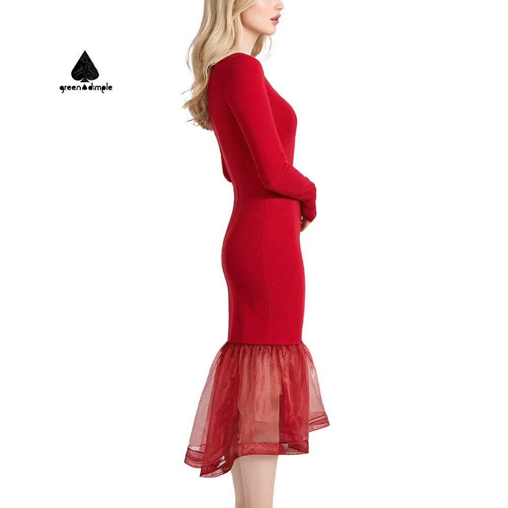 ZYHT 21541 Wholesale Crew Neck High Waist Casual Dresses Elegant Lace Velvet Mermaid Hem Ruched Long Sleeve Dresses for Women
