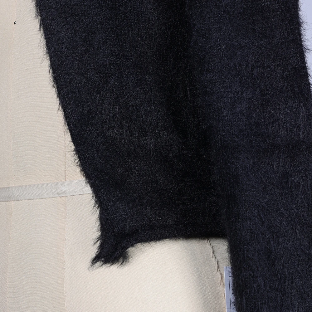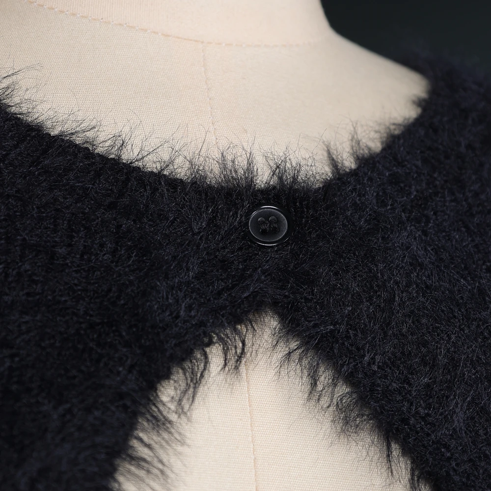 Custom Furry Mohair Solid Crop Cardigan Sweater Autumn Wool Short Slim Long Sleeve Sexy Streetwear Casual Top