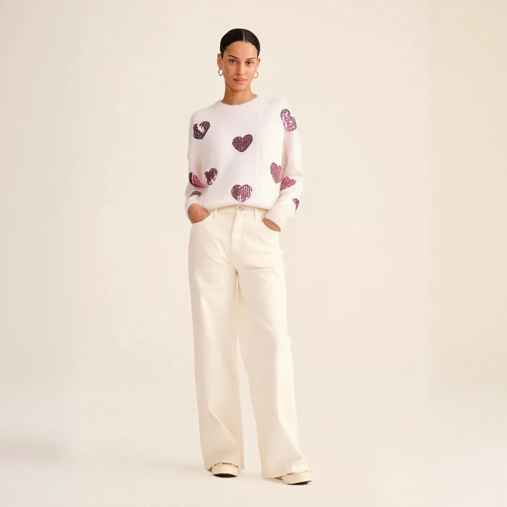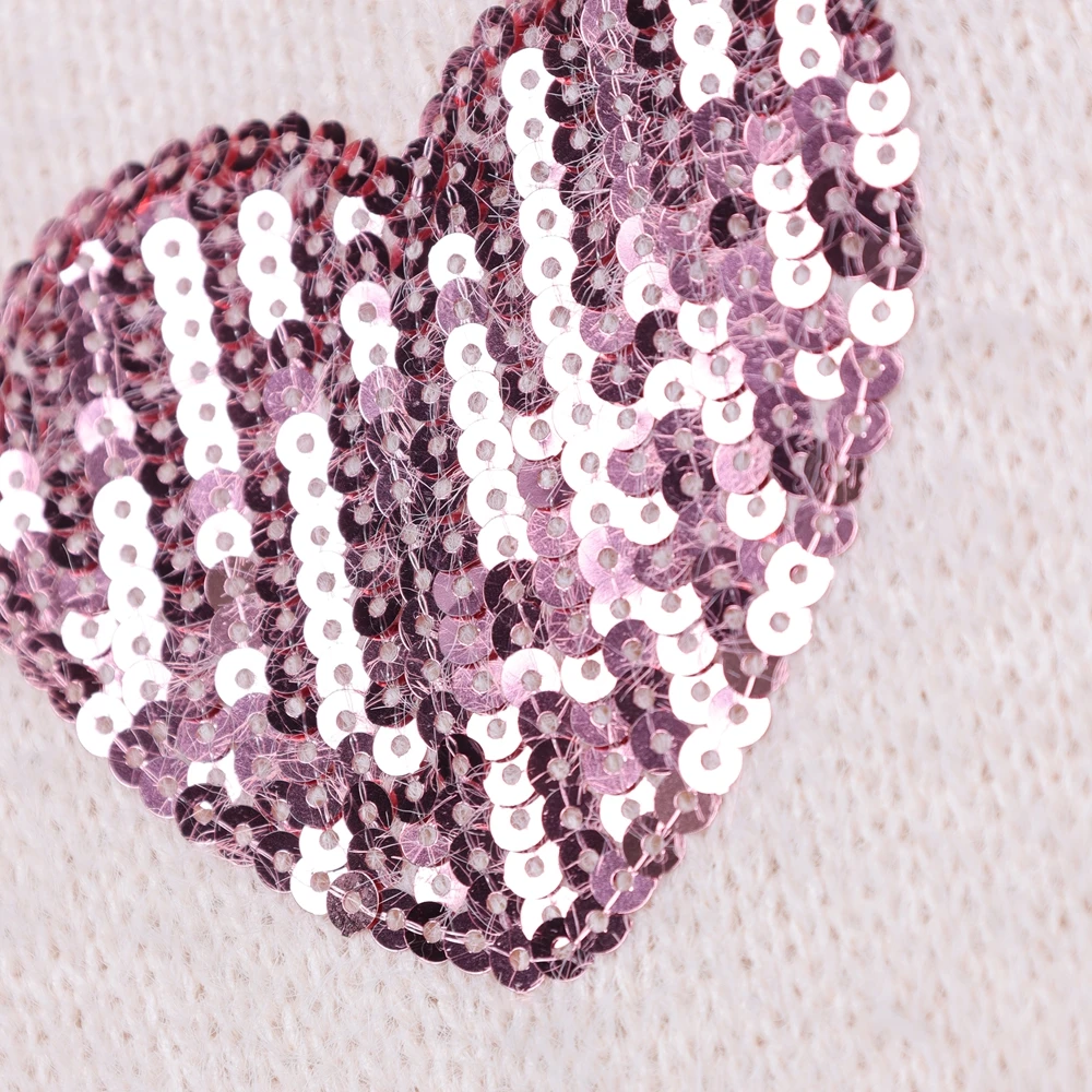 Custom Women's Casual Heart Rose Sequin Embroidered Round Neck Loose Pullover Drop Shoulder Sweater with Ribbed Sleeves