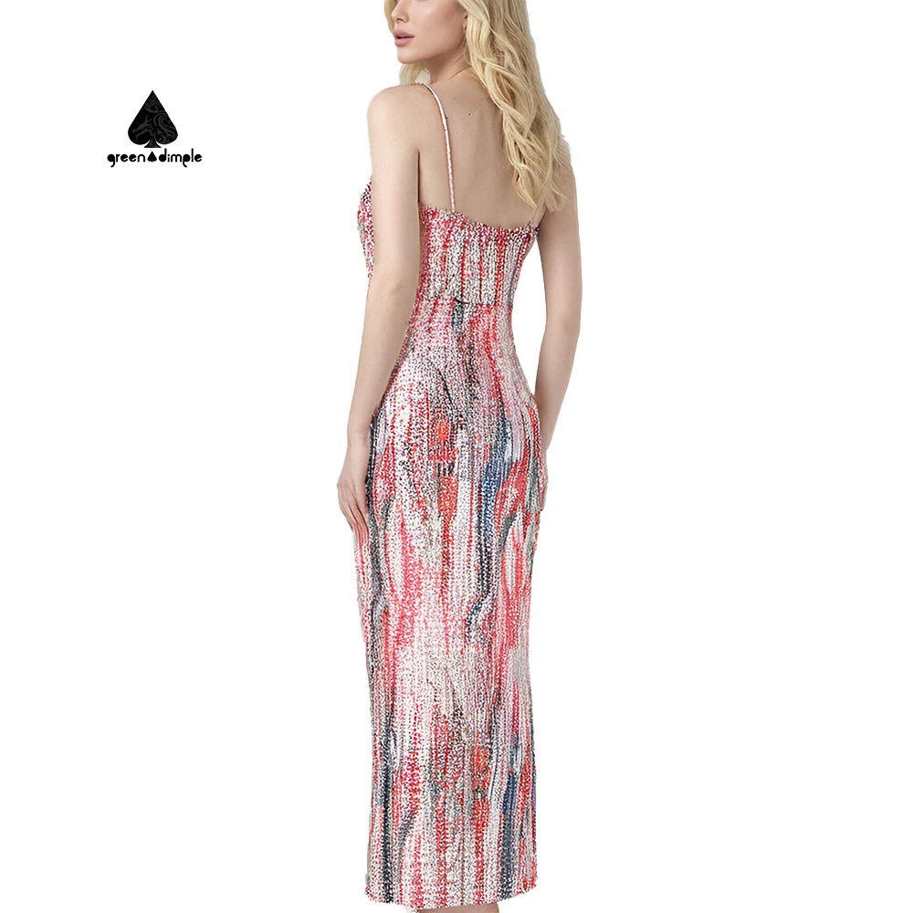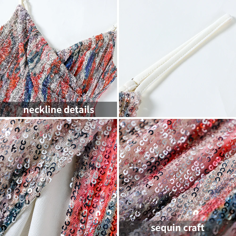 Custom Sexy V Neck Sequin Birthday Party Dress Girls Evening Party Dresses Colorful Sequin Gown for Party