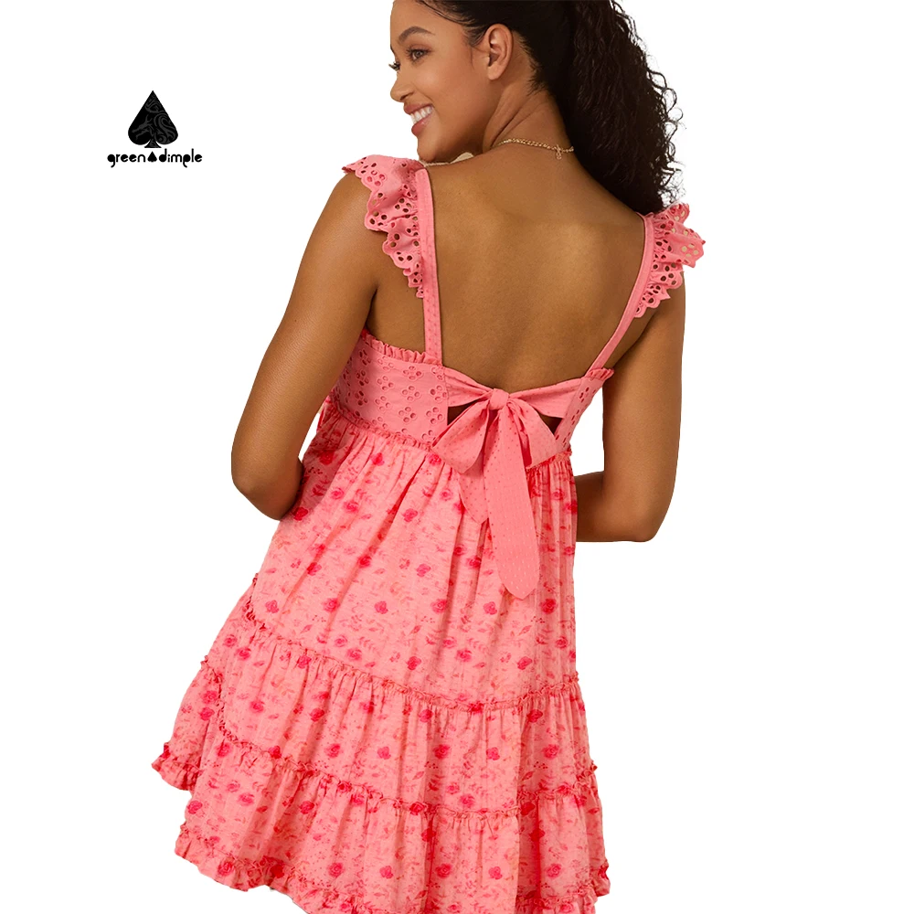 Customize Summer Red V-neck Ruffle Straps Floral Printed Casual Short Dresses Custom Fashion Ladies Plus Size Dress