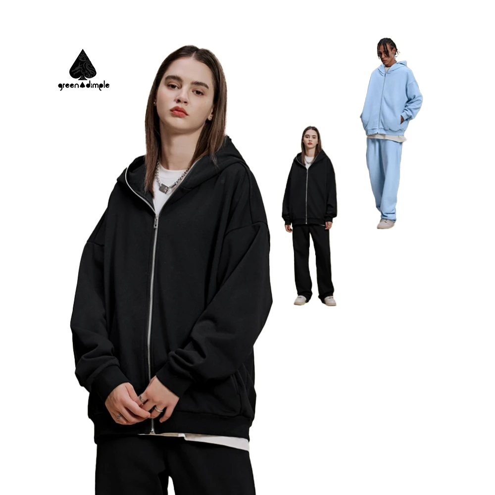 Streetwear Style Custom Heavy Weight 430 Gsm Cotton Blends Zip up Hoodies Blank Zipper Men's Hoodies